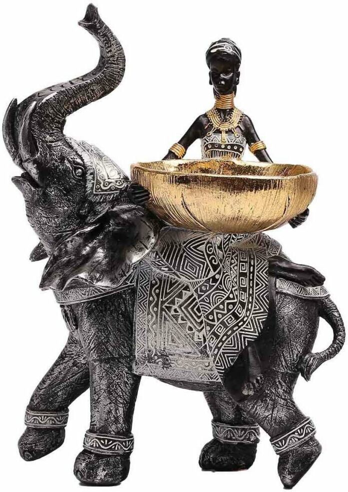 [An ideal decoration with a thought] Lescafita African Design Silver African Elephant and Tribal Lady Figurines with African Tribal Totem decor express the African cultural aspects of spirituality. African Animal and Women Decor Art Sculptures, Holders Statues for Home, and Table Decor Art Statue is a combination of symbolism expressing a rich African cultural belief and appreciation of Nature and the Human Spirit.
