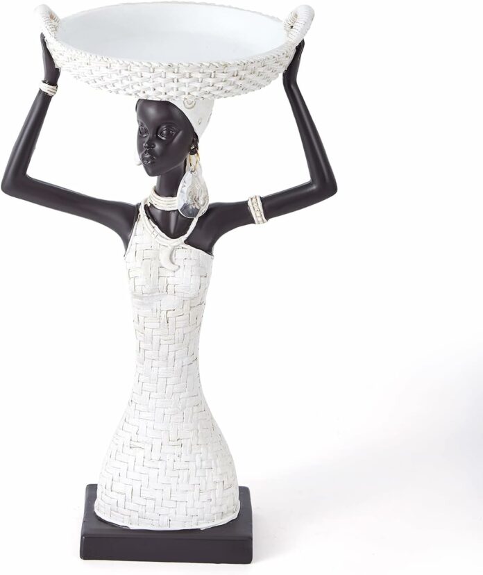 【Statue Size】: L6.5’’xW4.7’’xH11.2’’, It can be used for dessert plates, key bowls, storage trays, and is also a very beautiful home decoration. 【handcraft】This statue is purely handmade, polished, hand-painted, and comes with an independent safety packaging. 【Gift Choice】: A great gift for Mother’s Day, Christmas, birthday. 【Home Decorative Figurine】: Beautiful African tribal home decorations, bedrooms, restrooms, living rooms, even offices, bookshelves.. 【100% after-sales service】: If you have any dissatisfaction with our product, please contact us and we will arrange a replacement or refund for you in a timely manner.