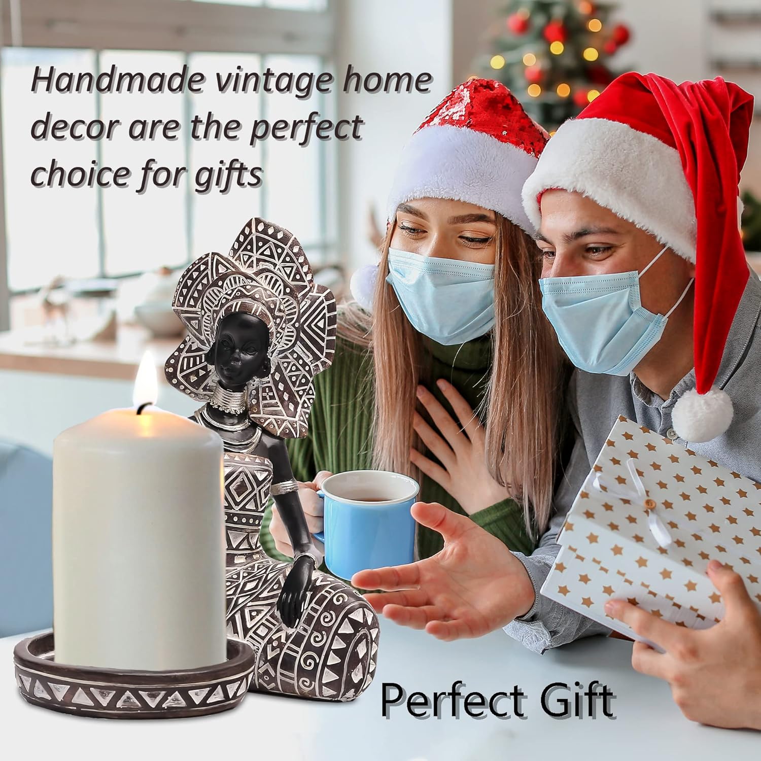 [An ideal decoration with a thought] Lescafita African Design Tribal Black Lady Figurines with African Tribal Totem Candle Holders Status decoration enrich with African cultural aspects of spirituality. The Woman Decor with Candle Holder Sculpture is a combination of African cultural elements. It is not only providing another light source but also symbolizes hopes and endurance in human spirits.