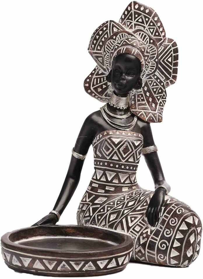 [An ideal decoration with a thought] Lescafita African Design Tribal Black Lady Figurines with African Tribal Totem Candle Holders Status decoration enrich with African cultural aspects of spirituality. The Woman Decor with Candle Holder Sculpture is a combination of African cultural elements. It is not only providing another light source but also symbolizes hopes and endurance in human spirits.