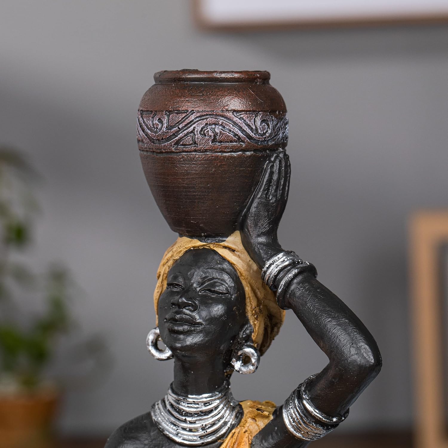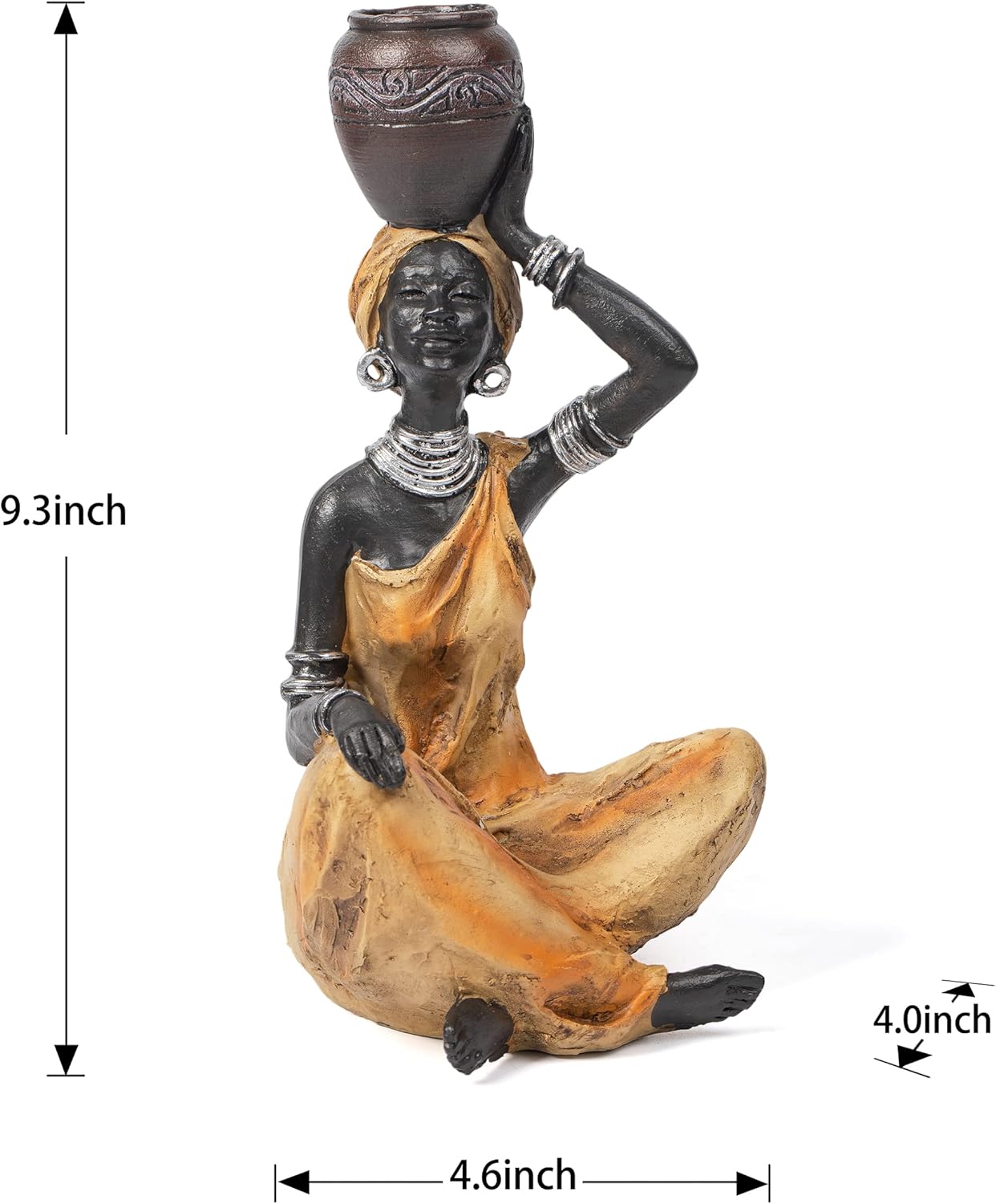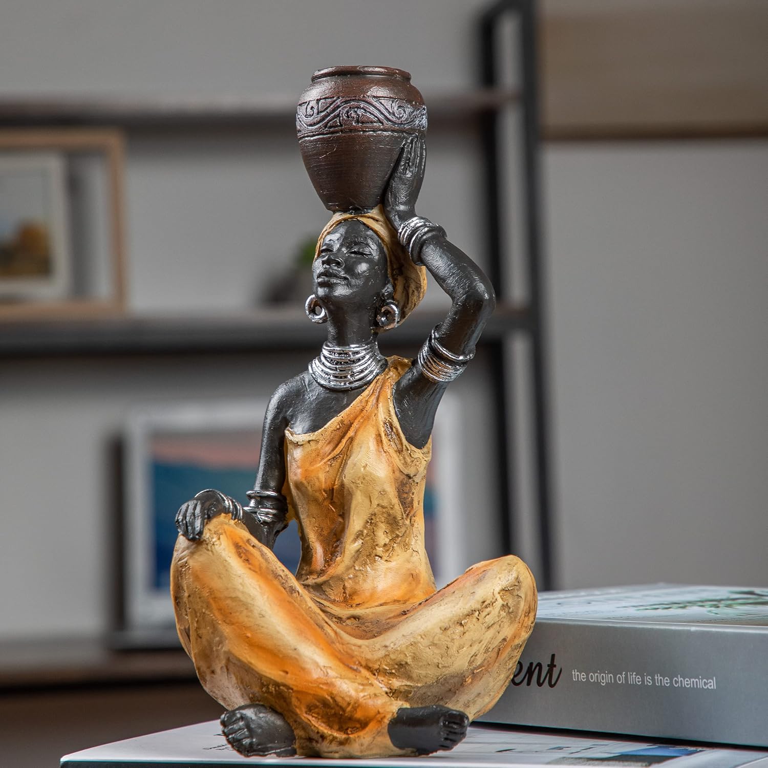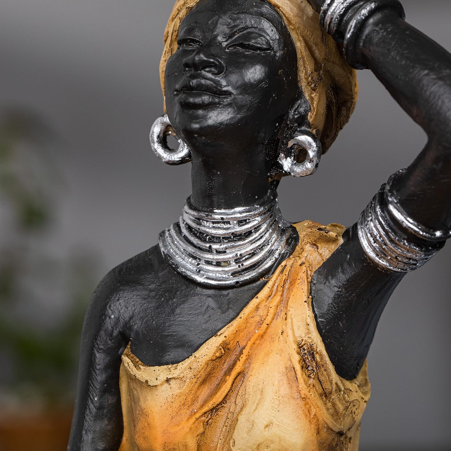 African Decor:The African figurine is made of qualified resin material and showing an antique golden yellow color appearance.This lady figurine is under hand painting,each item is unique.