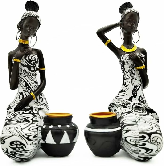 A single figure made of high quality poly resin, hand crafted and painted resin black African tribal lady figurines make an excellent complement to any home decor.