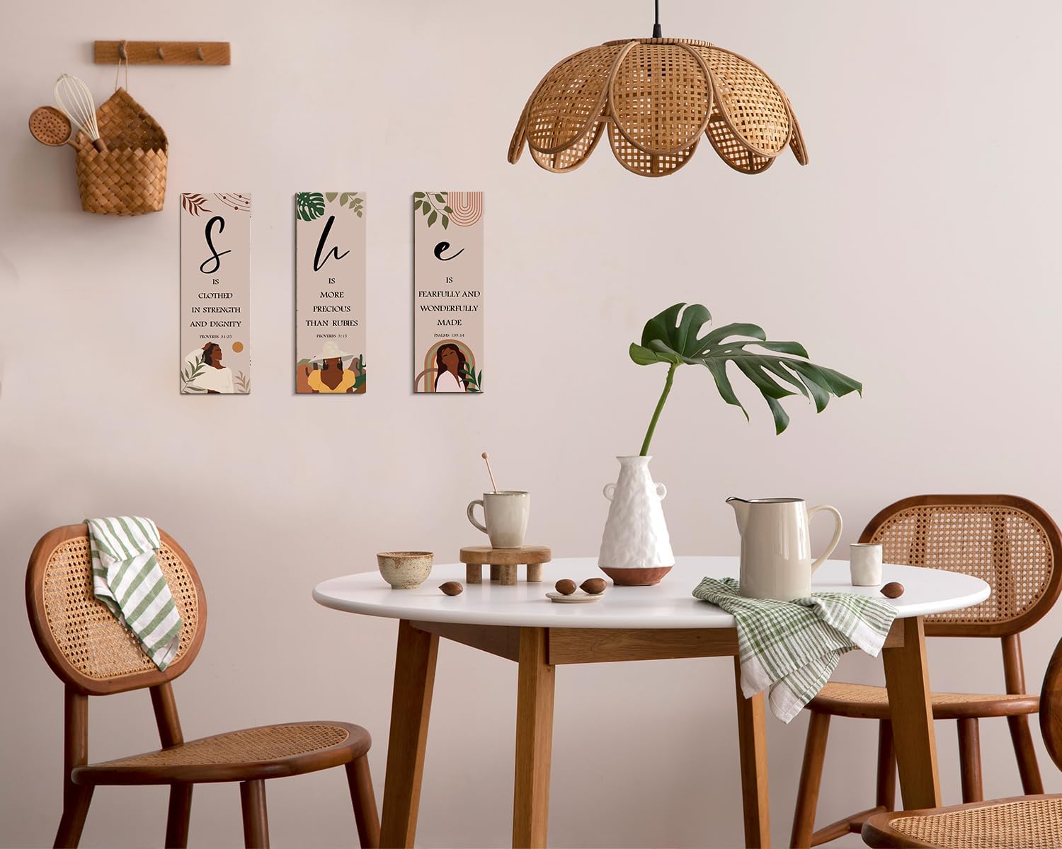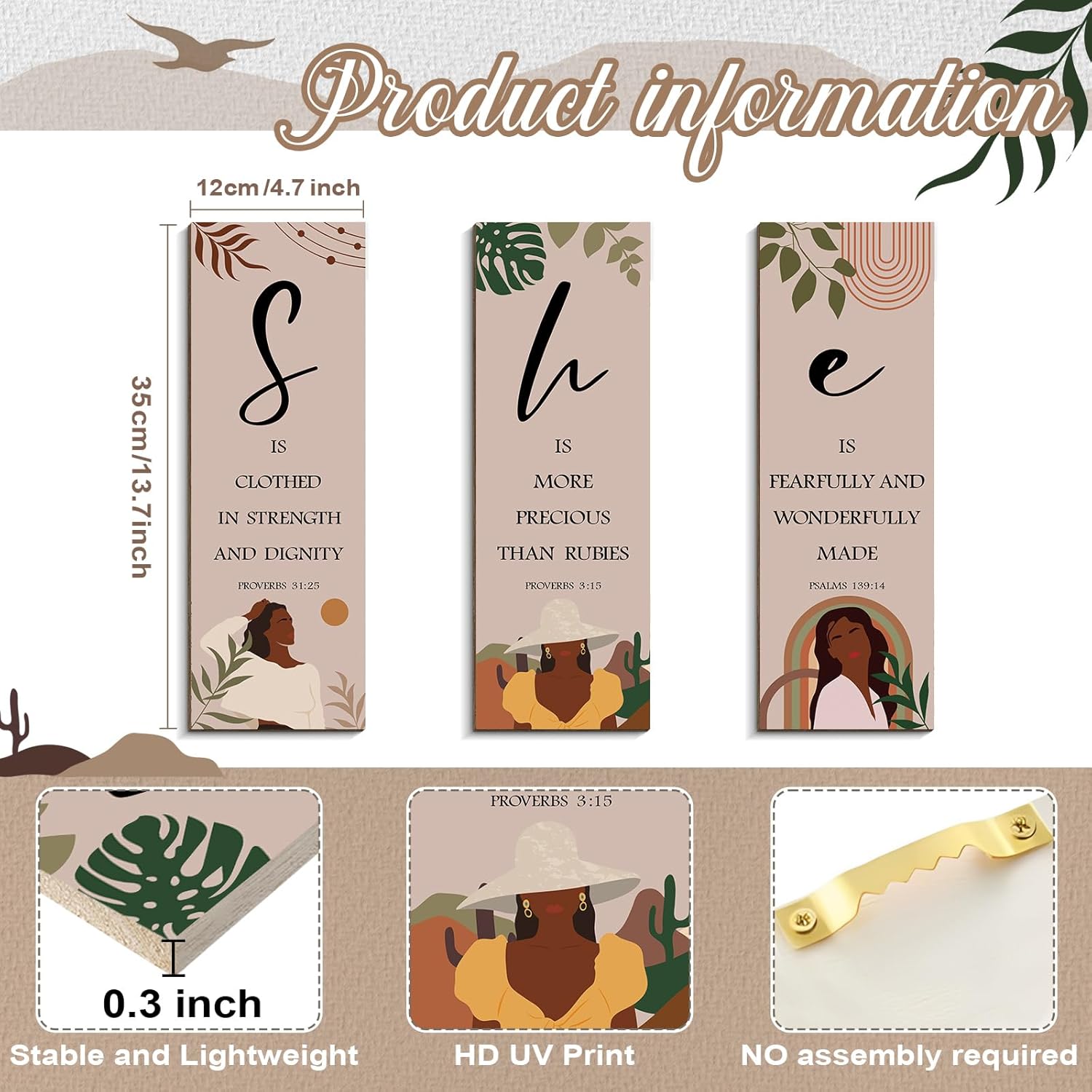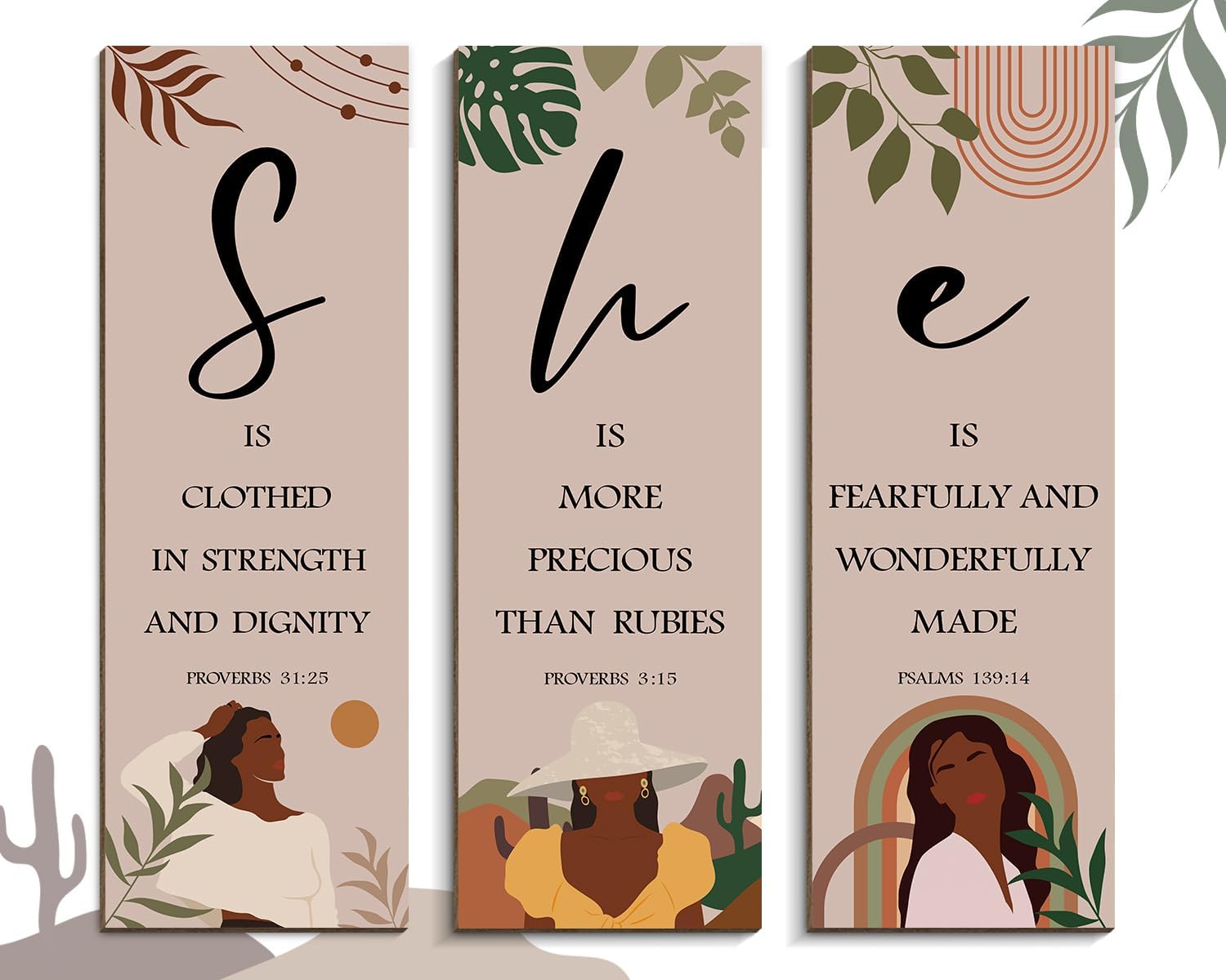 【Positive Quotes Wall Decor】 Elevate the ambiance of your room with our 3 pieces African American girl’s wooden hanging wall art. These inspirational word sign decors featuring the phrase “She is clothed in strength and dignity” “She is more precious than rubies” “She is fearfully and wonderfully made” add a touch of positivity and elegance to any space, especially for teen girls and women.
