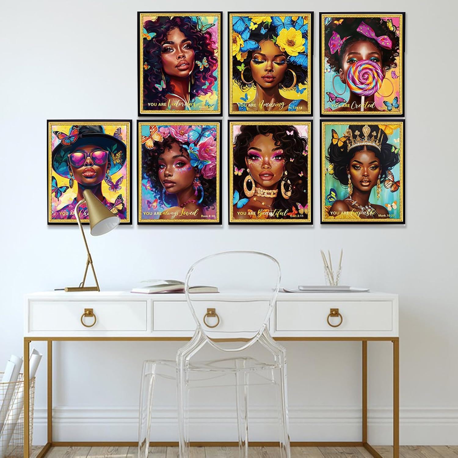 【Black Girl Wall Art】 Beautify your living space with our stylish and colorful black female art inspirational poster, unique design and vibrant colors will brighten up any space. Note: Art prints do not include frames.
