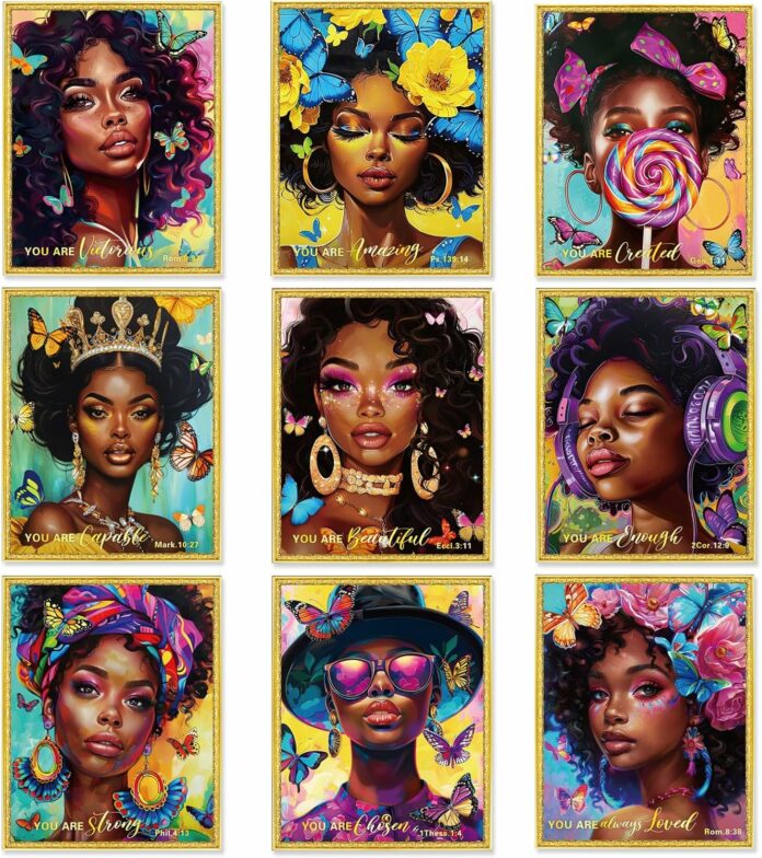 【Black Girl Wall Art】 Beautify your living space with our stylish and colorful black female art inspirational poster, unique design and vibrant colors will brighten up any space. Note: Art prints do not include frames.
