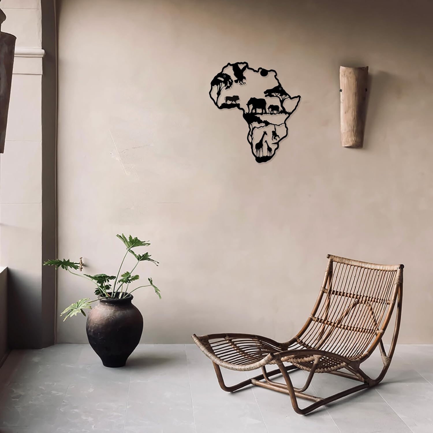 Embrace the captivating spirit of the African continent with our African Wall Decor. This unique African Art beautifully incorporates a detailed map of Africa and a vivid representation of its rich wildlife, making it an attractive addition to any decor theme.