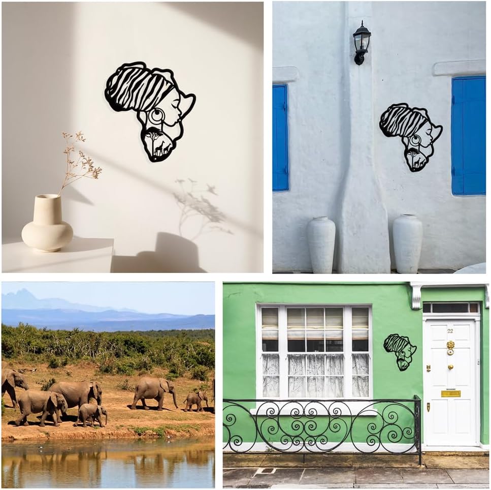Africa Map Design — The metal wall art is designed in the style of an African map with representative zebra patterns, giraffes, African women, big trees, etc. The whole design is full of novelty, creativity, delicacy and beauty, which is desirable.