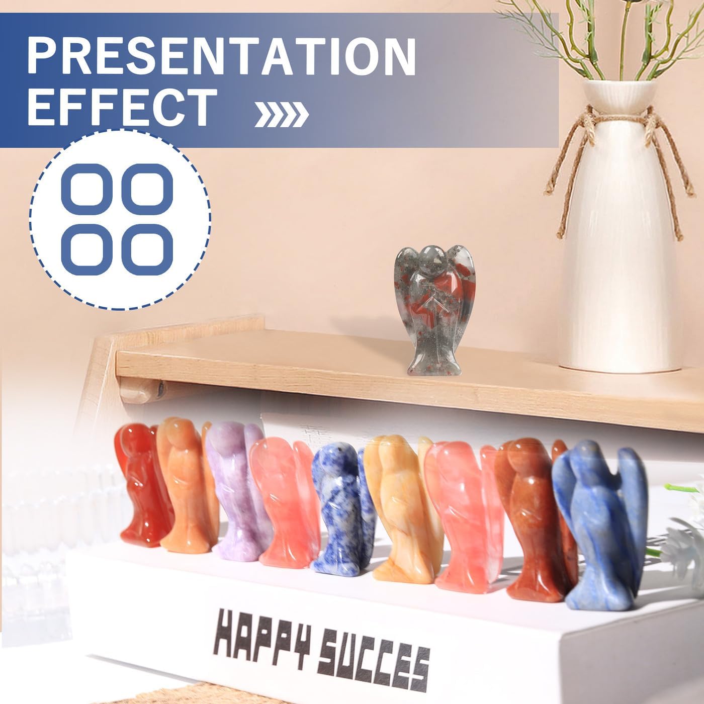 【 PLEASE NOTE 】 1. The peace angel stones statue (palm stones,energy stones,pocket stone) are smooth,polished,make of diffrerent gemstones, due to the nature of gemstones, carvings may slightly vary in texture color, size and shape. Each product has a unique appearance. Just like each of us is unique. 2. If you have any suggestions for the products, please contact us on Amazon at any time. We insist on customer first and will handle it for you immediately.