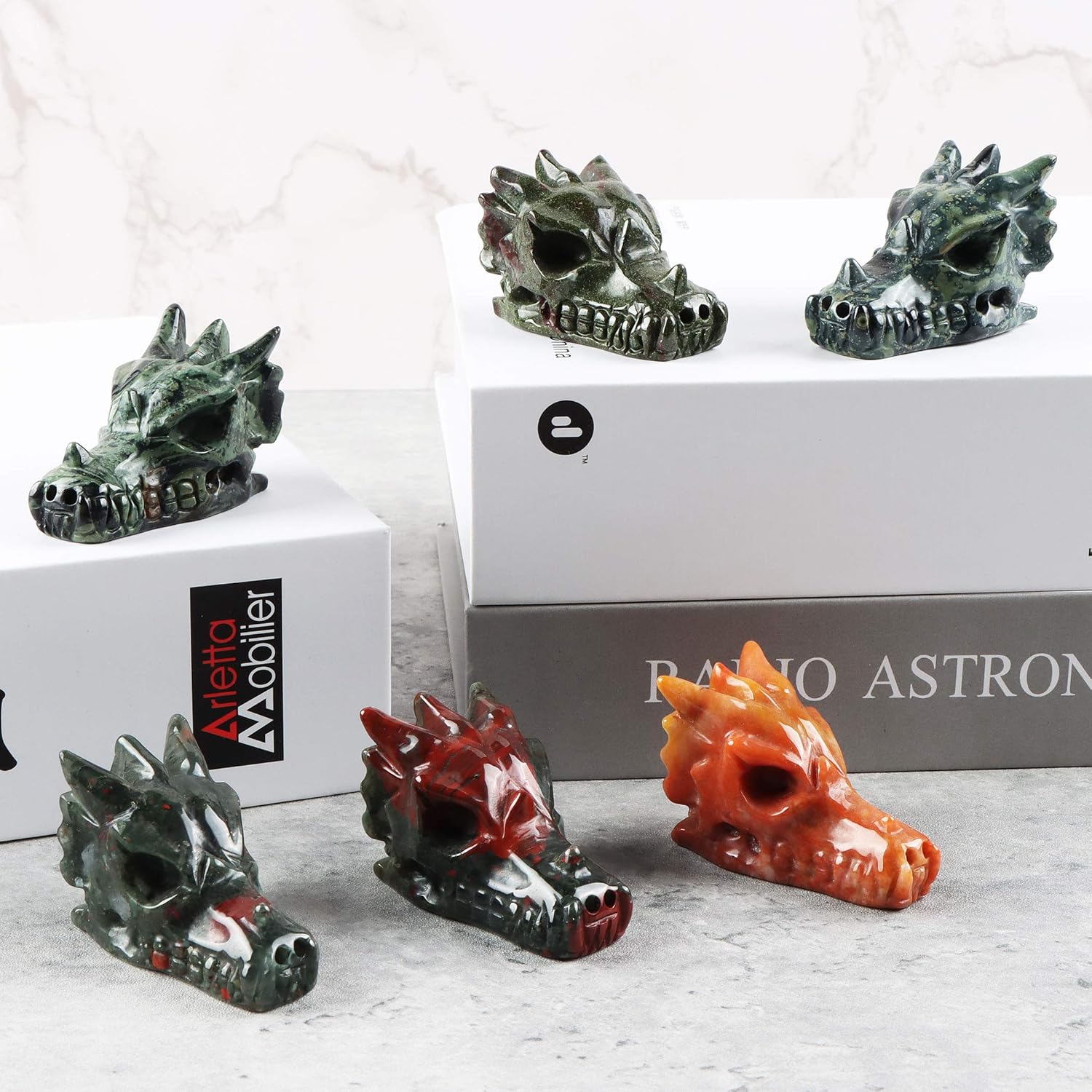 Hand Carved:This 2inches crystal dragon head skull are carefully manufacture from natural gem stone,through our excellent craftsman hand carved and polished, nice detailed and high quality realistic gemstone animal sculpture.