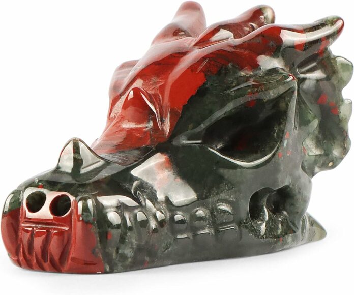 🐲【Materail Benefits】:Feng Shui lifelike dragon skull statue made of African Blood.Bloodstone is a stone of courage,it helps to revitalize love relationships and friendships.Bloodstone has the capacity to clear scattered thoughts in preparation for meditation.