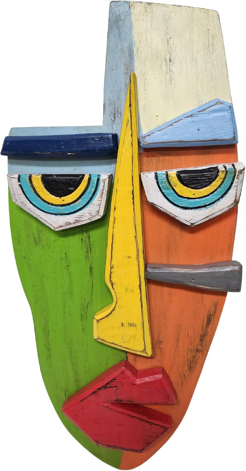 THIS MASK IS BRILLIANTLY HAND CRAFTED AND DETAILED OUT OF WOOD, SEE THE MAGNIFICENT DETAIL DONE BY THE MASTER CRAFTSMEN. THIS BEAUTIFULLY DETAILED WOODEN TIKI MASK IS ONE OF A KIND CREATION. WE HAVE BEEN CREATING, COLLECTING AND IMPORTING COLLECTIVE ART FOR MORE THAN 25 YEARS. WE BRING DIRECT TO YOU THE FINEST CRAFTED ART OF THE BEST QUALITY AND PRICE. SIZE OF EACH MASK IS APPROX 18 INCHES HIGH X 9 LONG X 1 WIDE please allow small variations in size and colors due to items being handmade.