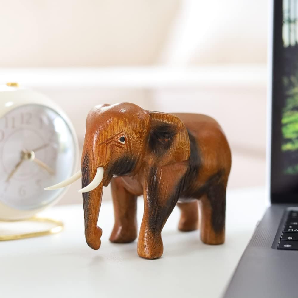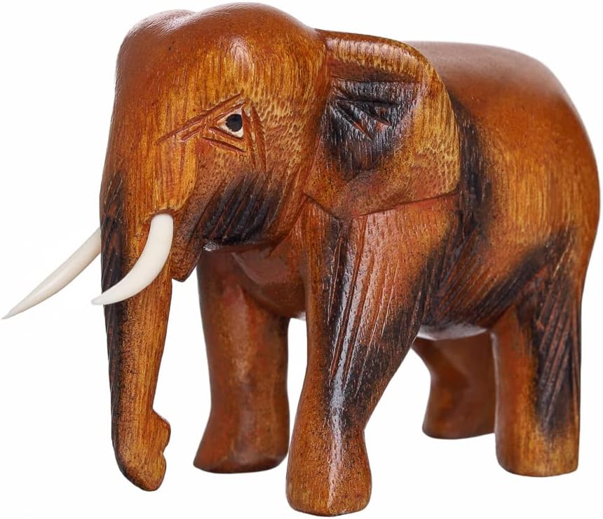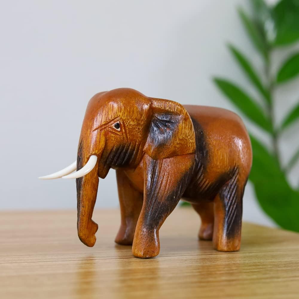 Genuine hand carved wood elephant made in Thailand by master craftsperson.