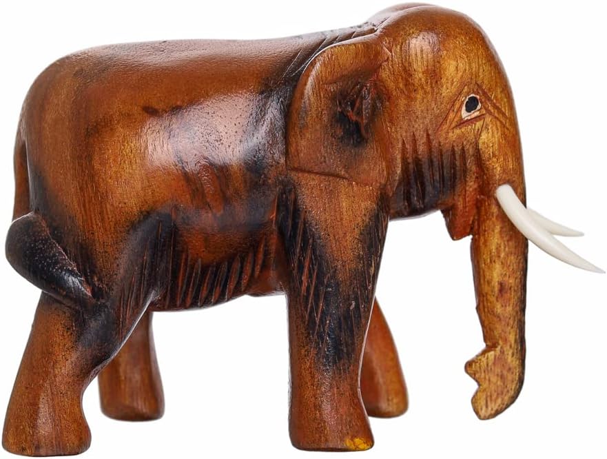 Genuine hand carved wood elephant made in Thailand by master craftsperson.