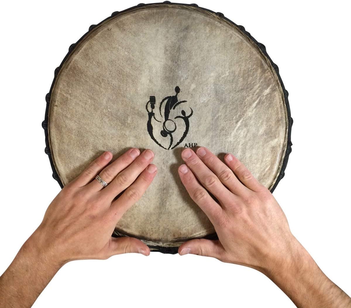 PREMIUM MATERIALS & EXCEPTIONAL SOUND: Our djembes are constructed from solid, hand-carved wood and feature natural West African goat skin drumheads. These quality materials ensure improved sound quality, producing warm, full bass sounds, strong open tones, and clean, crisp high slaps right out of the box. The 13×24 size offers a balanced sound suitable for various musical styles.