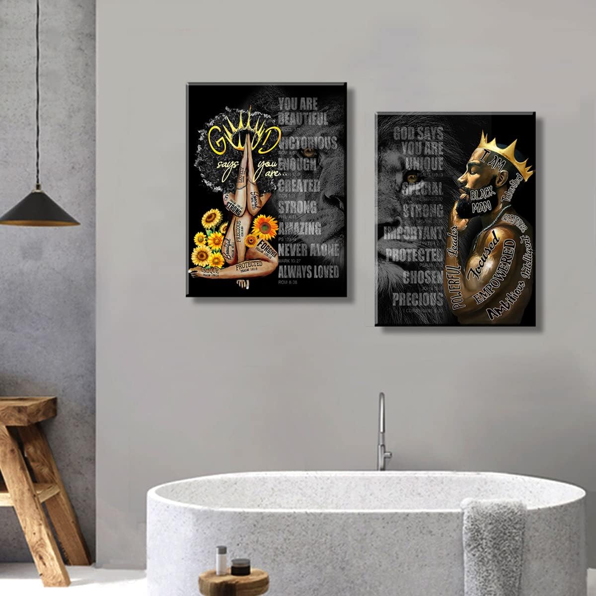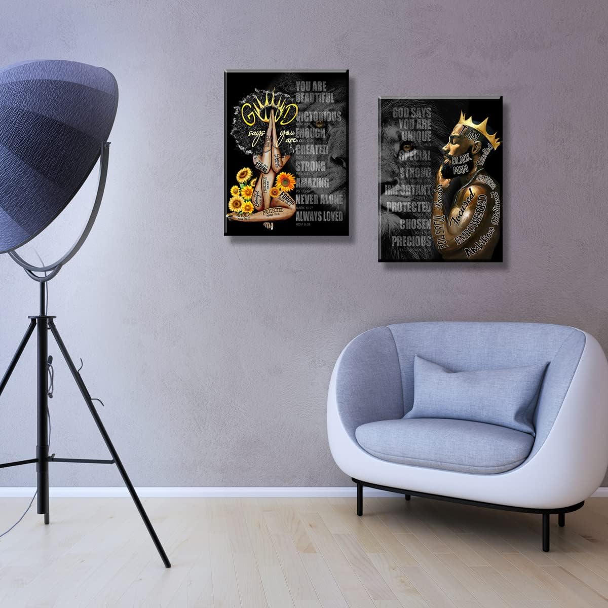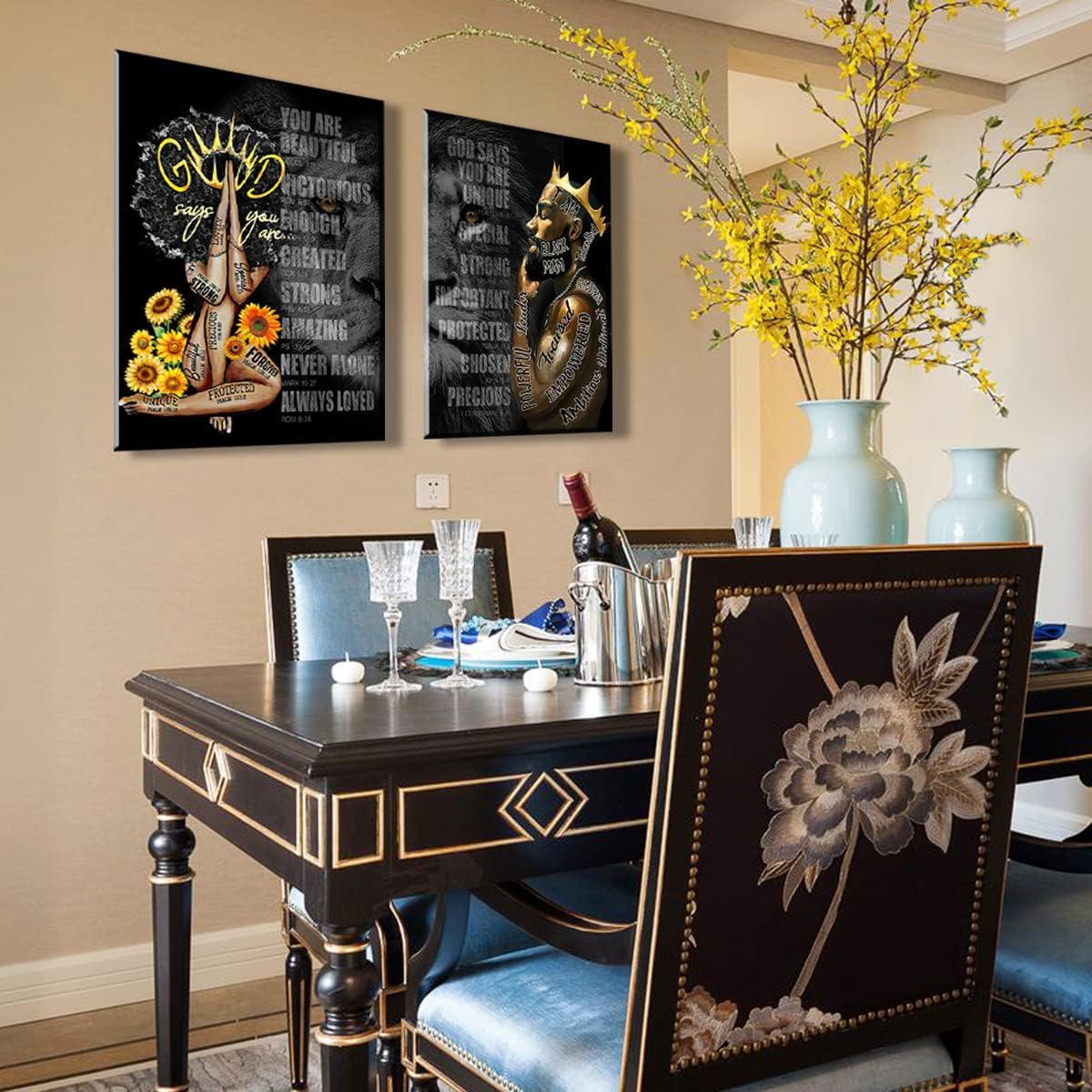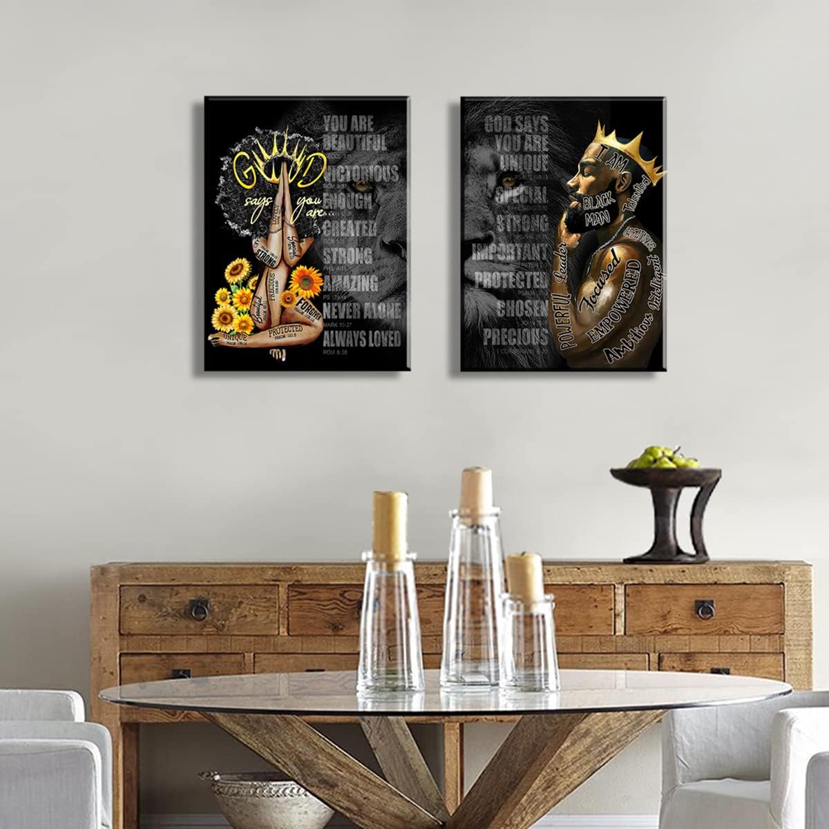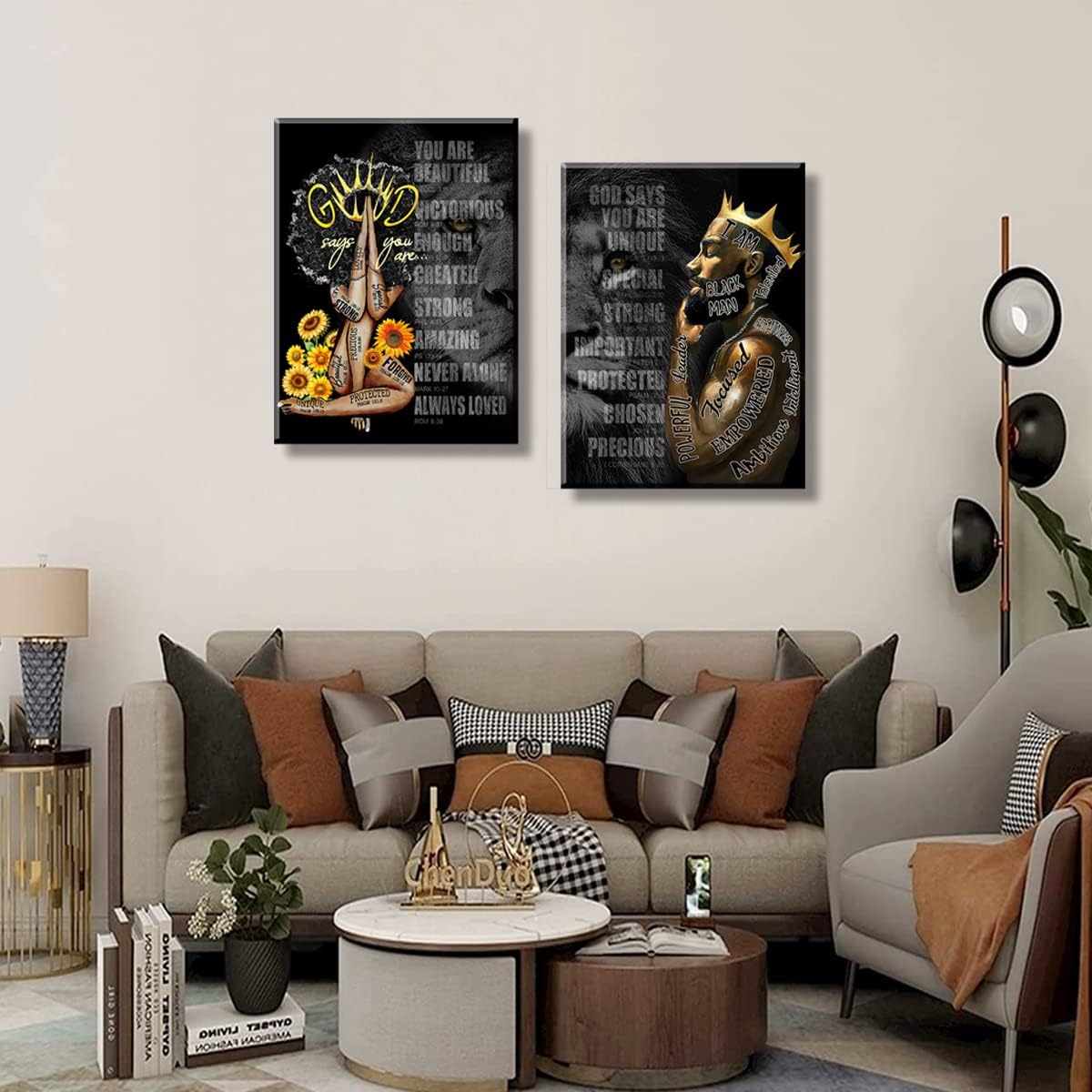 THE BEST GIFTS FOR A BLACK FRIENDS:African American Black Male King Queen Canvas Wall Art is a great choice for a loved one, family member, classmate, friend or work associate. King and Queen Crown Black Gold Decorations can also give your family, friends and partners good ideas for birthdays, wedding days, anniversaries, holidays, Valentine’s Day, housewarming, Christmas and New Year gifts.