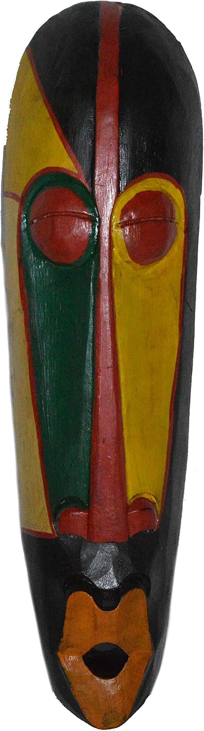 THIS MASK IS BRILLIANTLY HAND CRAFTED AND DETAILED OUT OF WOOD, SEE THE MAGNIFICENT DETAIL DONE BY THE MASTER CRAFTSMEN. THIS BEAUTIFULLY DETAILED WOODEN TIKI MASK IS ONE OF A KIND CREATION. WE HAVE BEEN CREATING, COLLECTING AND IMPORTING COLLECTIVE ART FOR MORE THAN 20 YEARS. WE BRING DIRECT TO YOU THE FINEST CRAFTED ART OF THE BEST QUALITY AND PRICE. SIZE OF THIS MASK IS APPROX 20 INCHES HIGH X 5.5 LONG X 2 WIDE please allow small variations in size and colors due to items being handmade.