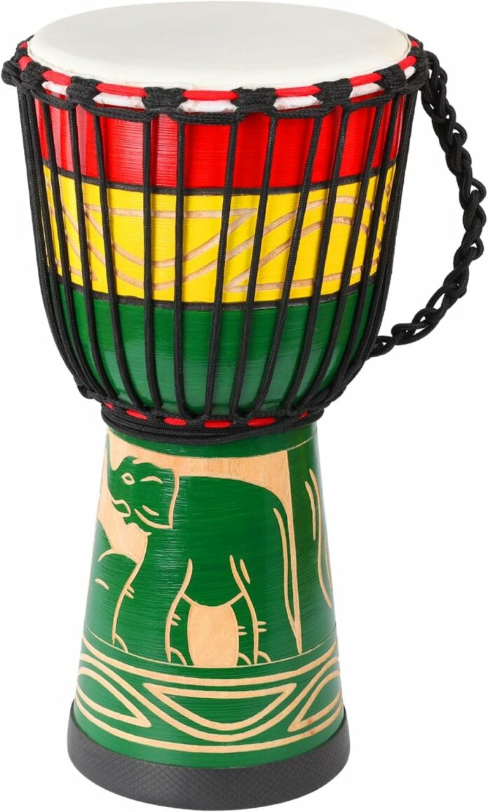 Djembe Drum,LIEKE 10” African Drum Carved of Mahogany Goatskin Drumhead for Adults Student Beginners Green