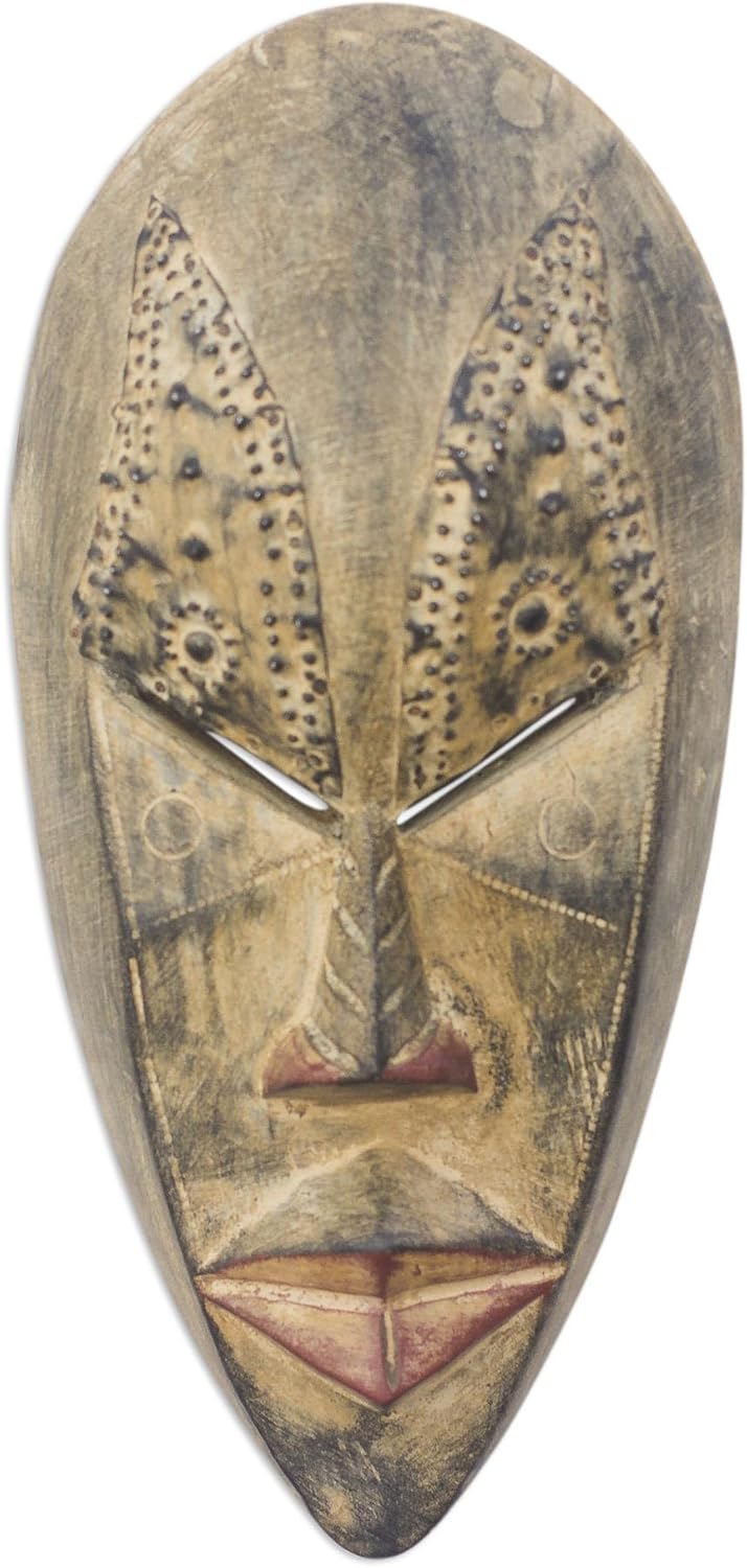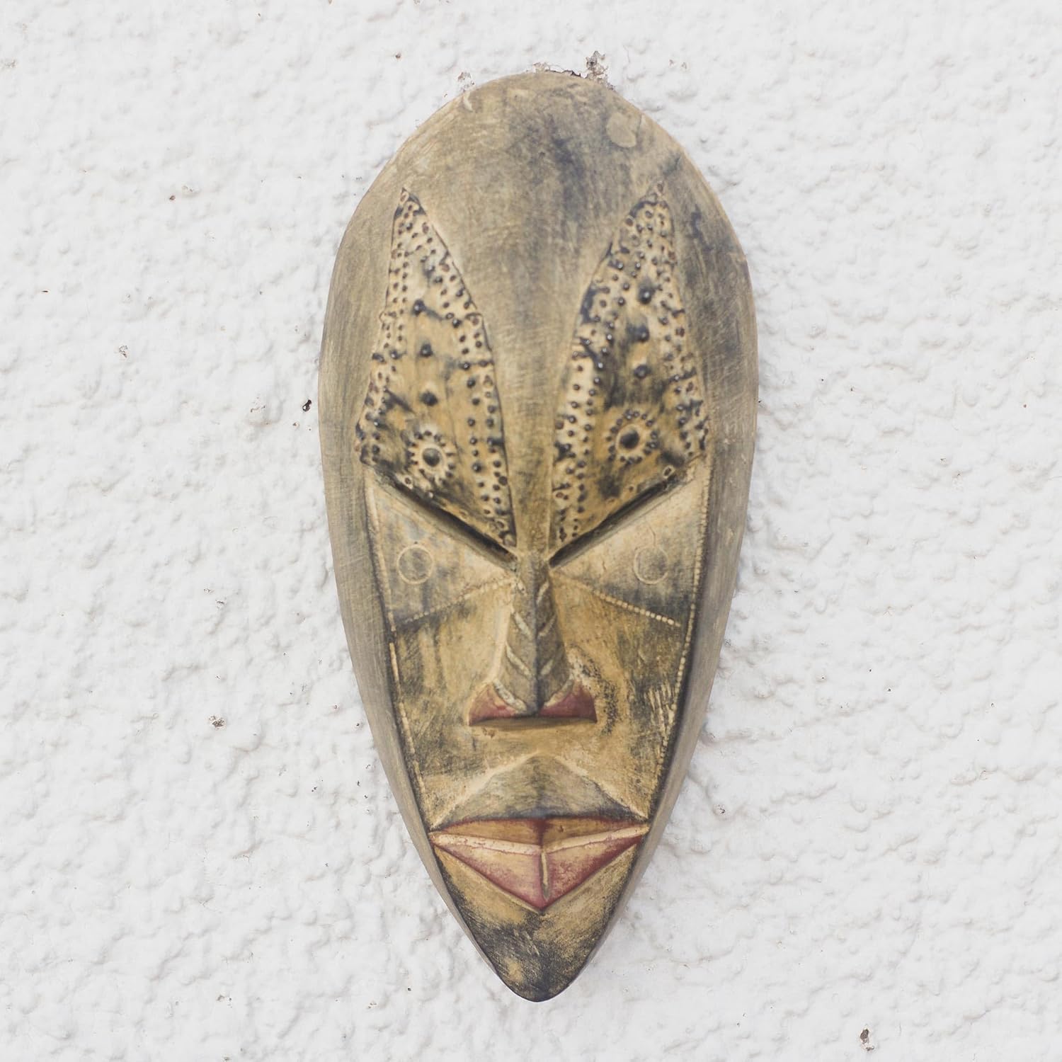 NOVICA, in association with National Geographic, works together with talented artisan designers around the world to produce stunning, keepsake treasures. Our mantra is to spread global happiness, so rest assured – we’ll do everything we possibly can to ensure you’re a happy customer. About this item: Hand-carved by Daniel Nyadedzor, narrow eyes are far seeing, and the countenance is serious. Its smooth, wide forehead boasts plates of embossed brass, and subtle color distinguishes this beautiful mask. Named Tagbagya (flat headed) in Ghana’s Ewe language, it depicts a person of brilliance, thus anyone who excels academically may be given this mask as an award. About our Artist: ‘After completing a course in auto mechanics, getting a job was difficult and neither my parents nor I could afford the high cost of the machinery I would need to set up on my own. I struggled by doing menial jobs, but I managed to save what I could until I had enough money to buy a small piece of land and raise a wooden store. I started buying finished carvings, and in the evenings I learned to carve these beautiful items. My inspiration comes through dreams, so when I wake up I immediately put the design on paper in order not to lose the idea.’