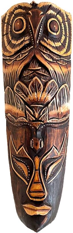 Hand Carved African Mask Features Detailed Carving And Contrasting Colors