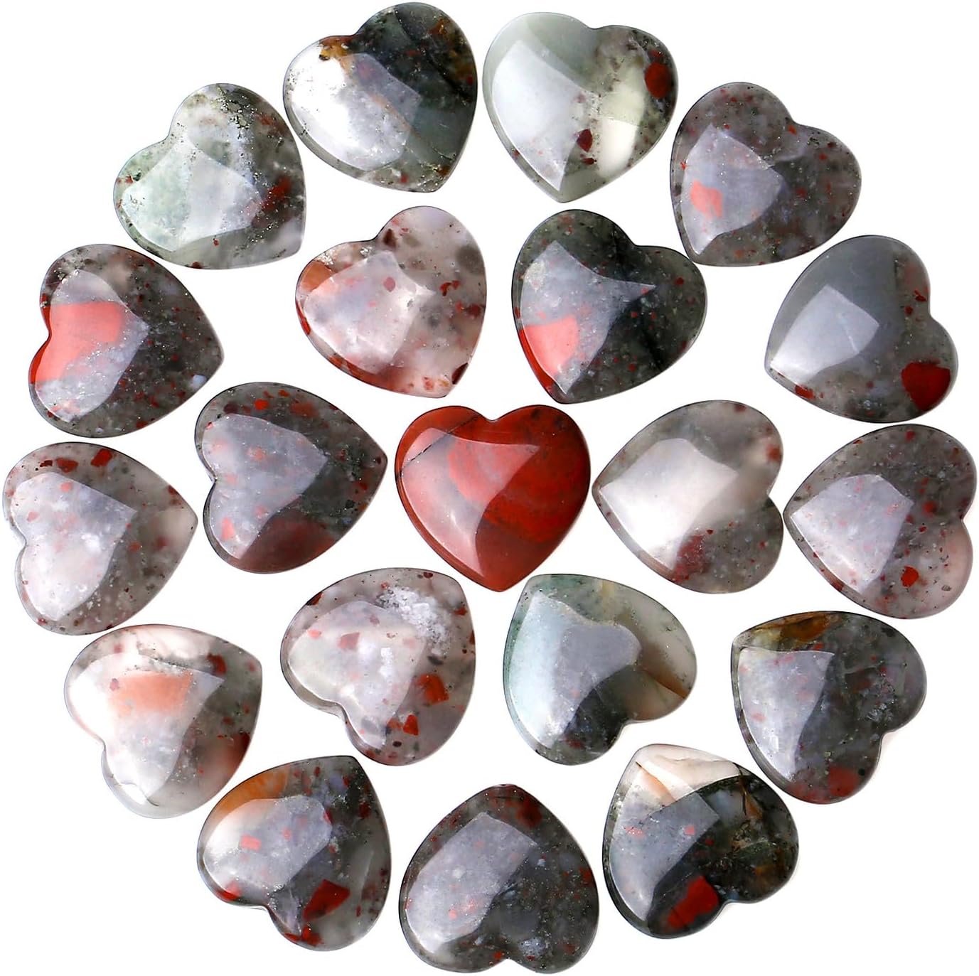 【Basic Information】 Specification attributes : 20 PCS Bulk Natural African Bloodstone Heart Crystal. (approximately)Size : 0.8*0.8*0.24 ” ; Weight : 0.15-0.2lbs/set. Convenient to put in your pocket and hold in your hand to conduct energy guidance.