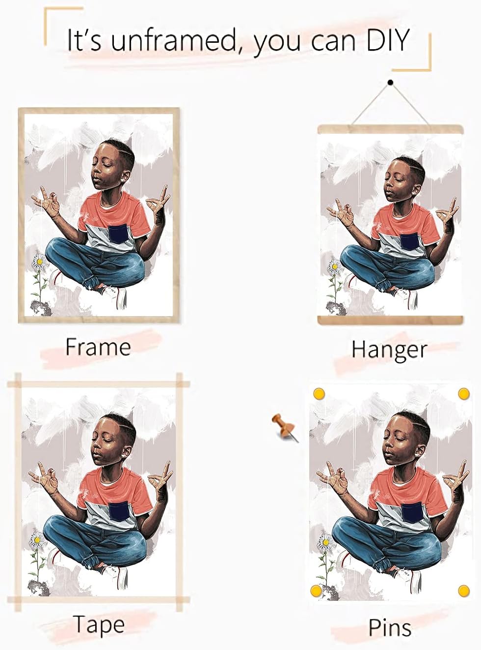 1【BLACK BOY ART POSTER】: At the end of a hectic day at work, are you thinking of relaxing and putting everything down when you see this black boy meditating poster. Perfect whether you are doing yoga or meditating.