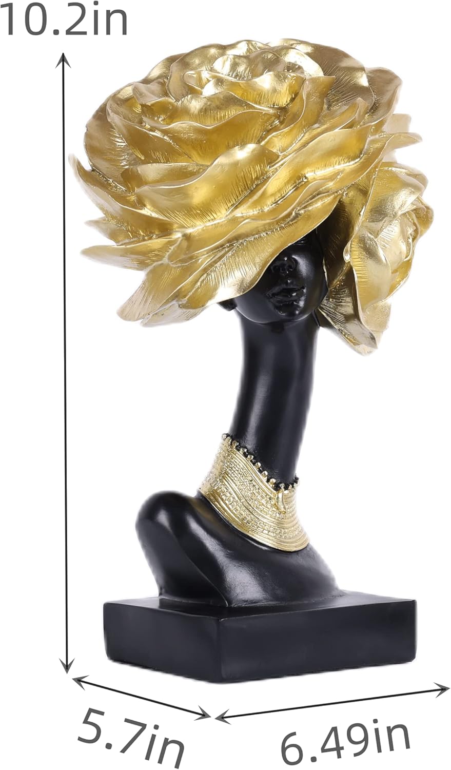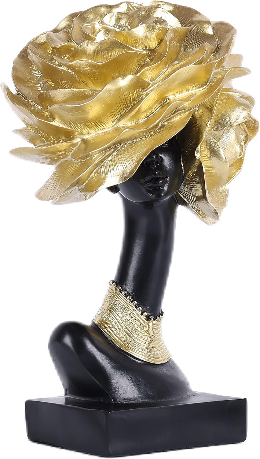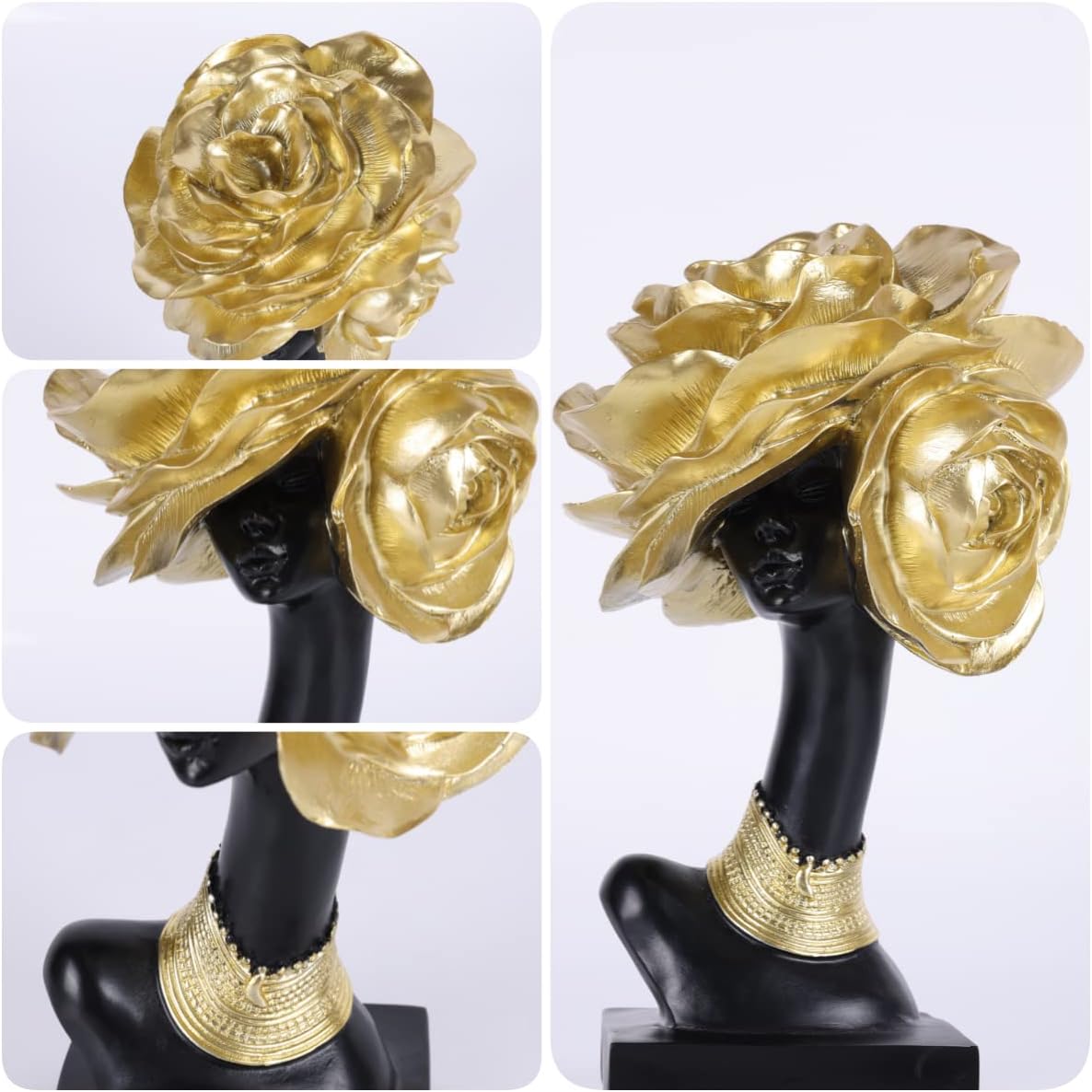 【Applicable scenes】 This black female headdress is the perfect complement to the creative handmade desktop decoration, headdress with gold roses to do dress up the figurine does not look monotonous and suitable for home decoration, living room, bedroom, office, shelves, rooms, bookcases decorative statues