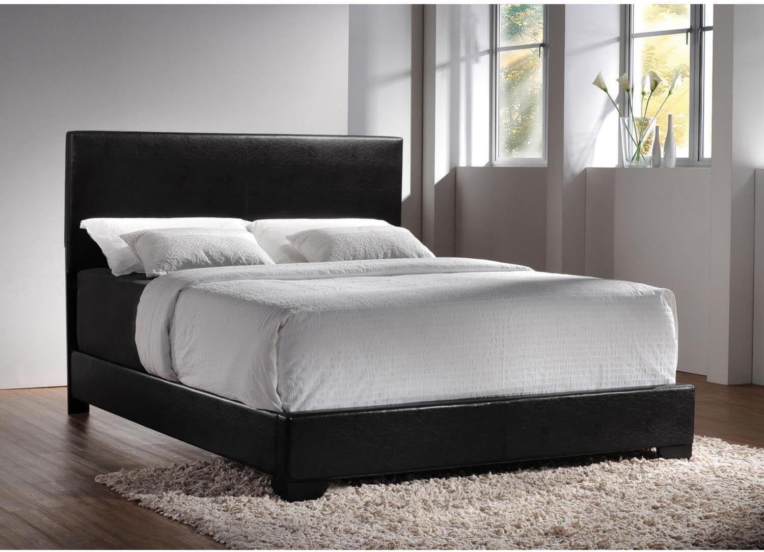 Elevate Your Bedtime Routine With Cozy Casual Comfort This Queen Bed Boasts A Simple Sophisticated Tuscan Treats That Exudes Effortless Glamour Its Leatherette Upholstery Feels Smooth Soft And Sensuous To The Touch A Bold Black Headboard And Frame Give It A Stately Appearance That Really Stands Out With Its Durable Solid Wood Construction YouLl Enjoy Night After Night Of Peaceful Rejuvenating Sleep