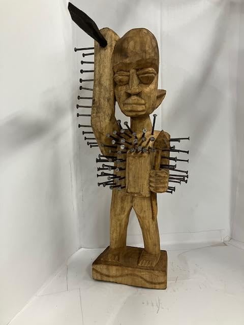African Wood Figures Alboran Carved Power Figure Nkisi N’kondi Santeria Palo Ifa Egun Lucero 16in tall African Wood Figures Alboran Carved Power Figure Nkisi N’kondi Santeria Palo Ifa Egun Lucero
