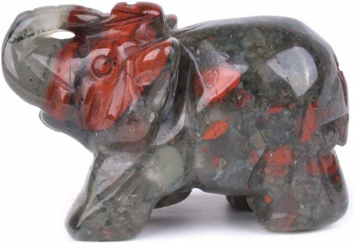 Carved Natural African Bloodstone Gemstone Elephant Healing Crystal Guardian Statue Figurine Crafts 2 inch