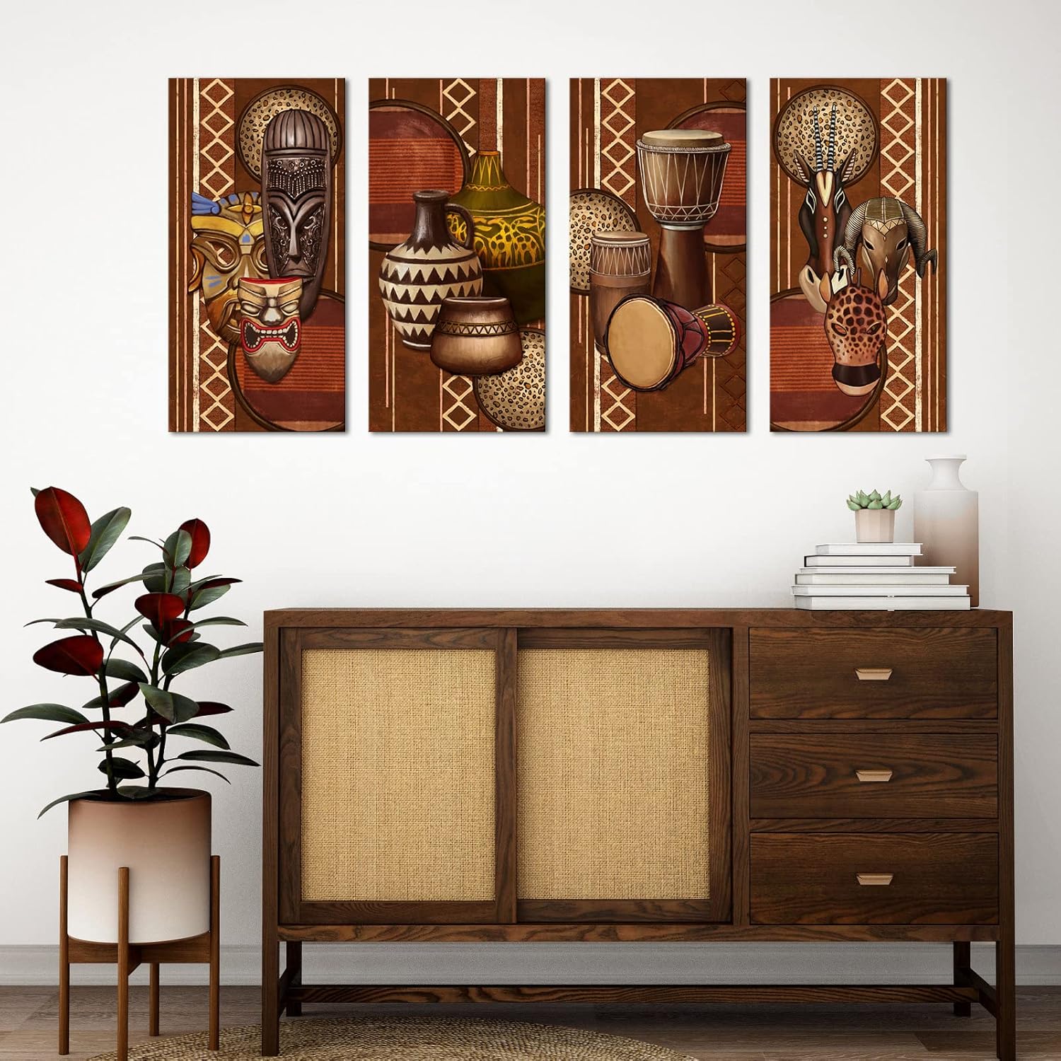4 Piece Wrapped Ethnic Ancient Picture Canvas Wall ArtProduct Size: 12″ L x 24″ W x 4pcsTotal Size: 24″ L X 48″ W (Actual size: 60cm L X 120cm W; Does Not Contain Any Voids)