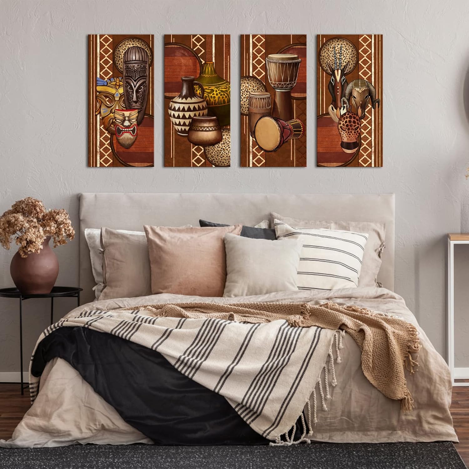 4 Piece Wrapped Ethnic Ancient Picture Canvas Wall ArtProduct Size: 12″ L x 24″ W x 4pcsTotal Size: 24″ L X 48″ W (Actual size: 60cm L X 120cm W; Does Not Contain Any Voids)