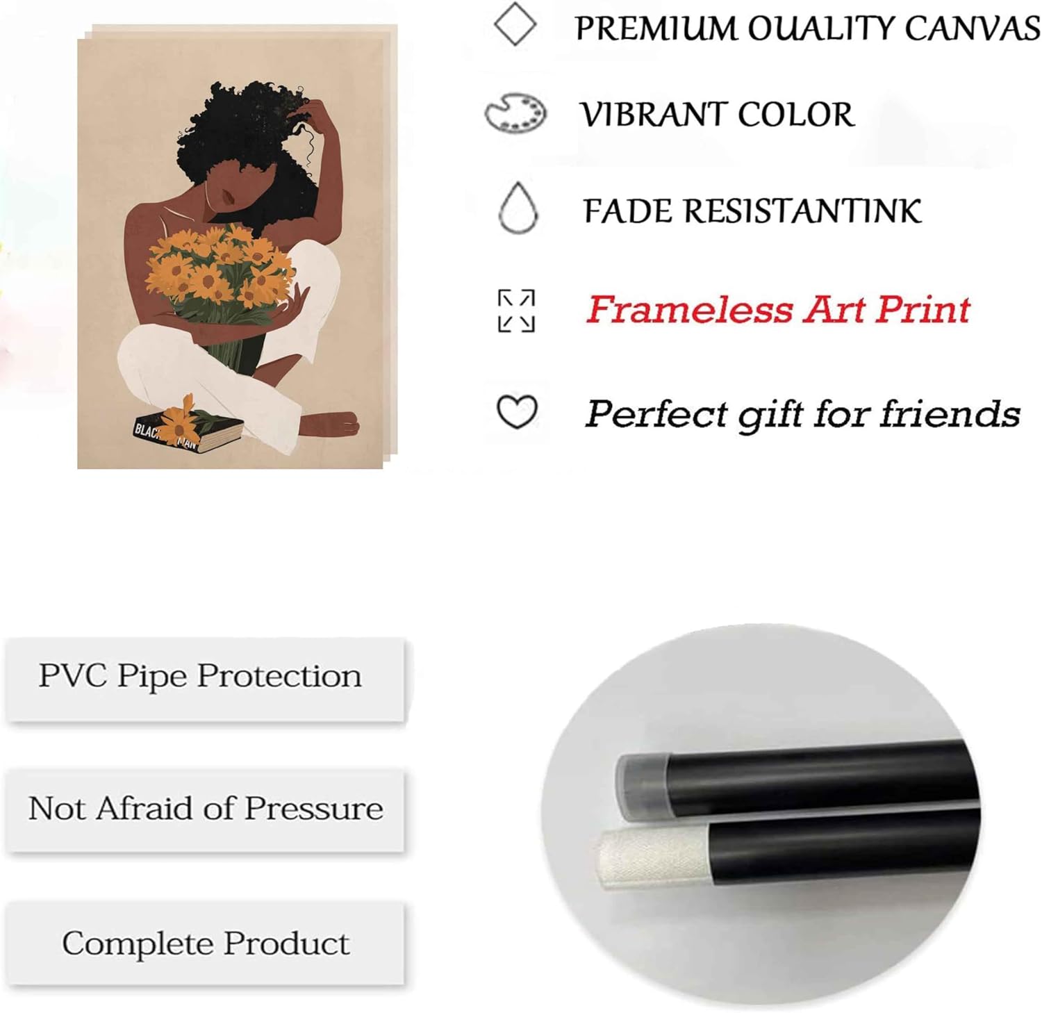 Perfect Wall Decoration: This Black Woman Canvas Poster Suitable For Hanging In Your Home, Living Room, Bedroom, Kitchen, Guest Room, Apartment, Office, Studio, Hotel, Dining Room, Bar, Etc. It Is Also A Great Gift Idea For Your Relatives And Friends For Holidays Or Other Special Occasions