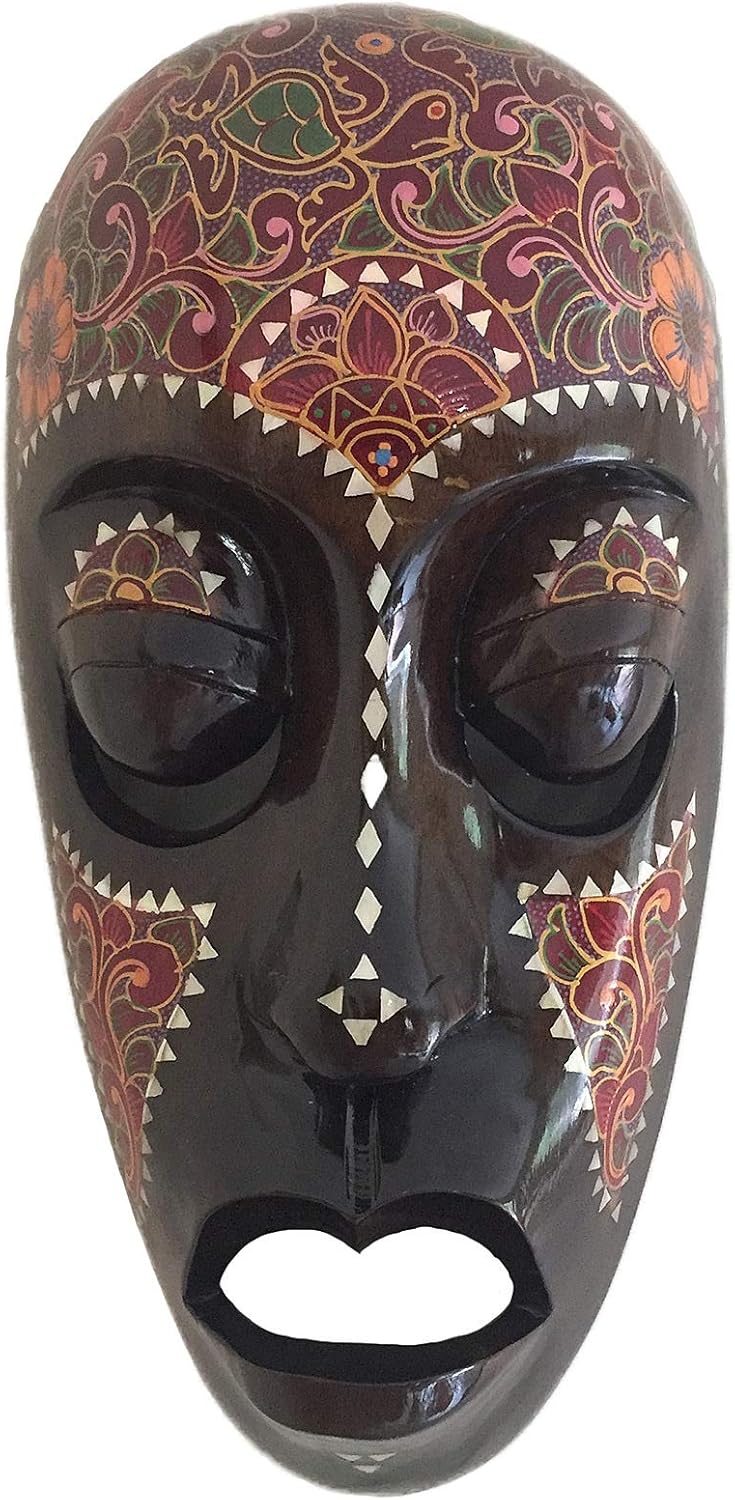 Stunning African Mask With Genuine Mother Of Pearl Inlay. Hand Carved And Hand Painted By Skilled Artisans