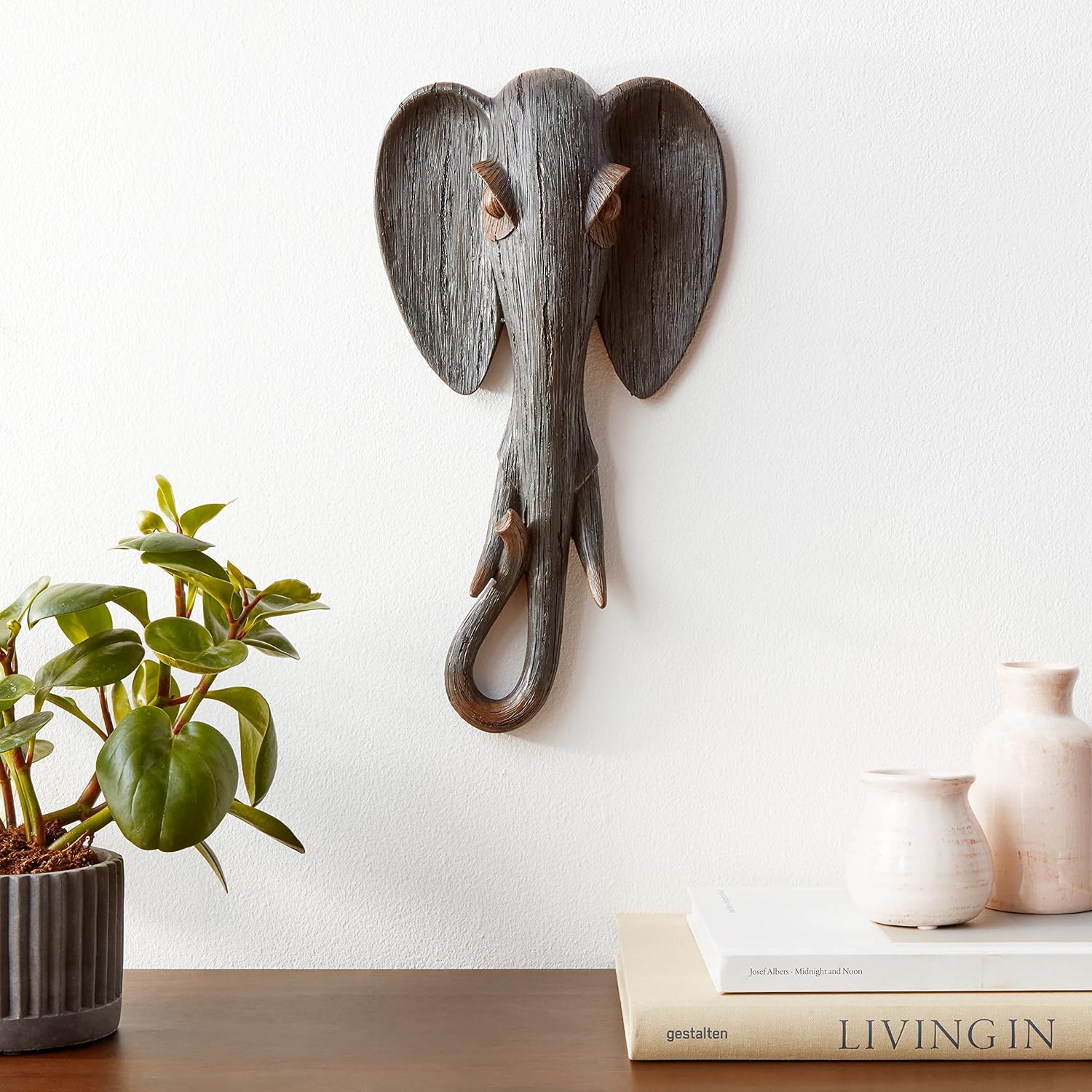 HIGH QUALITY WALL SCULPTURE – Hand-cast using real crushed stone bonded with durable designer resin, this elephant cast is hand-painted with a faux weathered wood grain to lend a timeless richness.