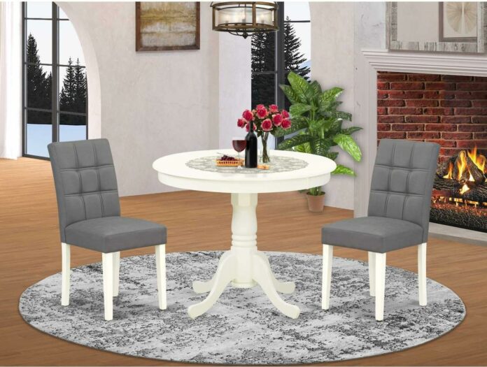 HomeStock 3Piece Kitchen Table Set The 3Piece Dining Table Ensemble Effortlessly Blends Fashion Utility And Comfort To Elevate Your Dining Space It Comprises A Round Wooden Table With A Pedestal Base And 2 Parson Chairs All Meticulously Crafted To Enhance Your Dining Pleasure Striking A Harmonious Chord Between Traditional And Contemporary Aesthetics This Dining Set Boasts An Exquisite Linen White Round Tabletop And Linen White Wooden Pedestal Legs For The Table The Dining Chairs On The O Ther Hand Sport Platinum Gray Faux Leather Seats And Linen White Wooden Legs Crafted From Premium Rubberwood This Kitchen Table Set Ensures Robustness And Lasting Performance RubberwoodS Renowned Durability And Resistance To Wear And Tear Make It The Perfect Choice For Furniture Subjected To Daily Use It Effortlessly Endures The Demands Of Daily Dining While Preserving Its Visual Allure The Kitchen Chairsincluded In This Modern Dining Ensemble Are Thoughtfully Designed To Harmonize With The Table Seamlessly Their Upholstery Provides A Plush And Inviting Seating Experience The Faux Leather Seats And Stylish Chair Backs Of The Parson Chairs Not Only Exude Style But Also Offer Practicality Particularly For Households With Children Assembling And Maintaining This Kitchen Table Set Is A Breeze You Can Easily Put Together The Kitchen Chairs And Wooden Table At Home And Keeping Them Clean Is Effortless With Standard Furniture Cleaningproducts Product Features Frame Material Rubberwood Fabric Type Faux Leather Table Top Style Round Chairs Back Style Stylish Back Table Color Linen White Chairs Color Platinum Gray Table Dimension Length 36 Width 36 Height 30 Chairs Dimensions Length 1805 Width 1575 Height 3625 Included In The Package 2 Upholstered Dining Chairs And A Dinner Table