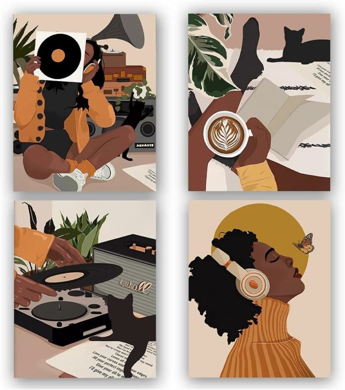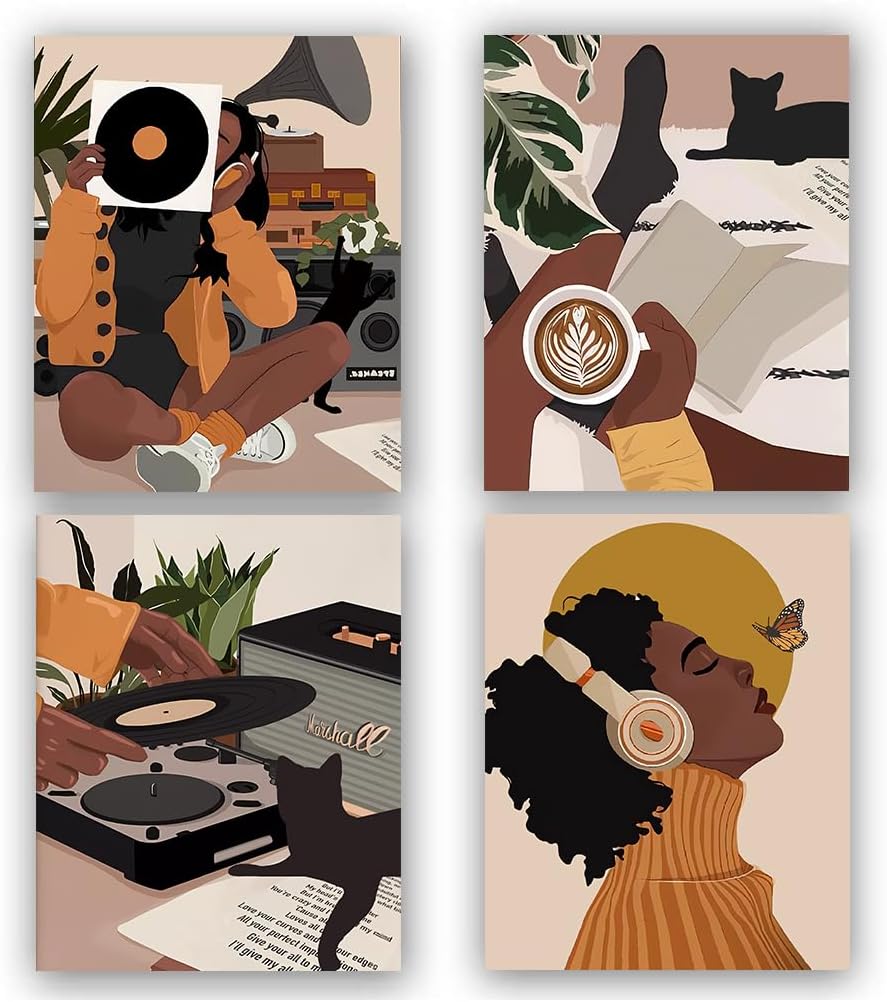 You want your room decorated full of unique and artistic right? Right, our Black Girl Art may be a good choice. ✬Package included:Black Girl Wall Art Bathroom Decor,Modern Minimalist Black Woman Leaf Art Painting,Set of 4 wall pictures (No frame,8X10Inch)