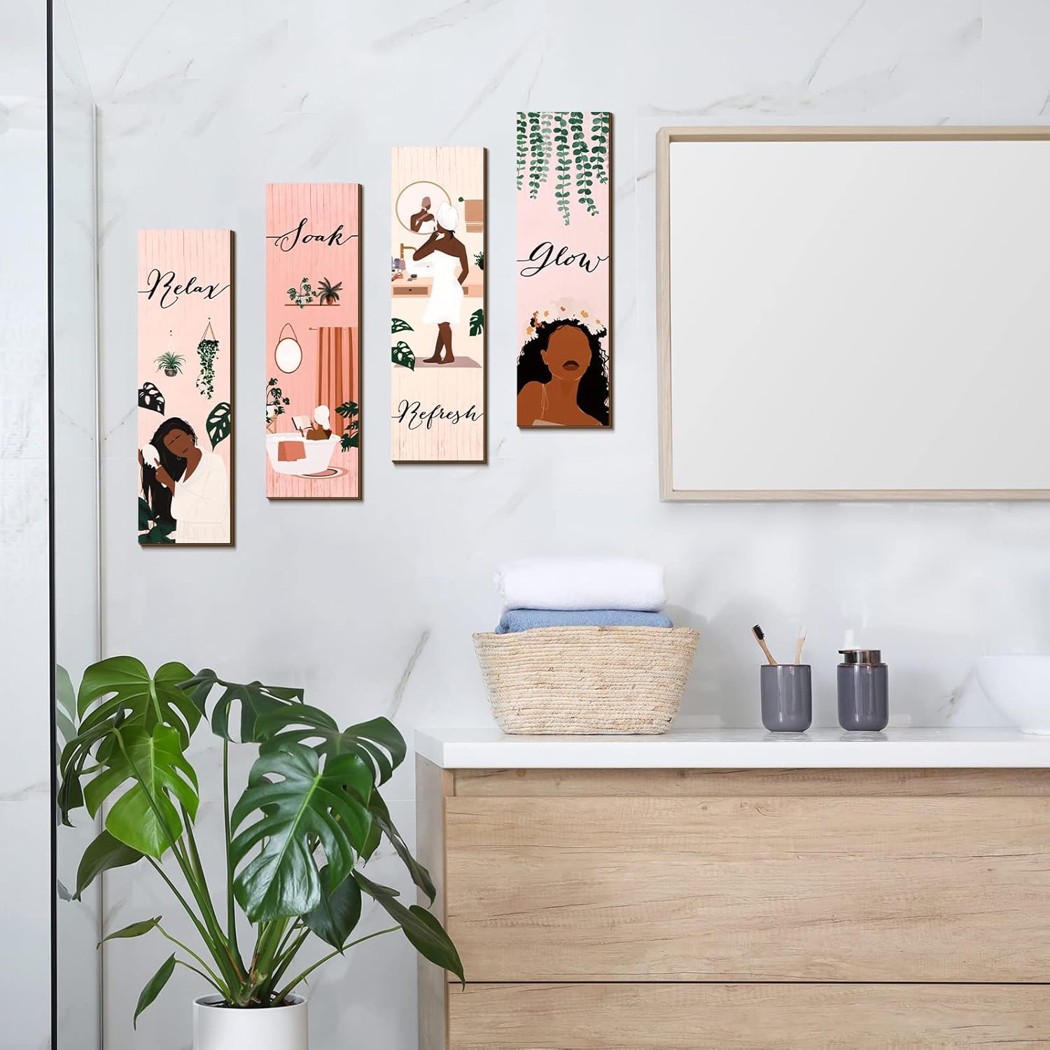 What’s Included: you will receive 4 pieces of 11.8 x 3.46 x 0.2 inch black woman bathroom wall arts, which are enough to meet your daily or festival decoration needs, or share with your friends; There are 2 hooks on the back of each boho room decor, so you can hang it on a wall or door