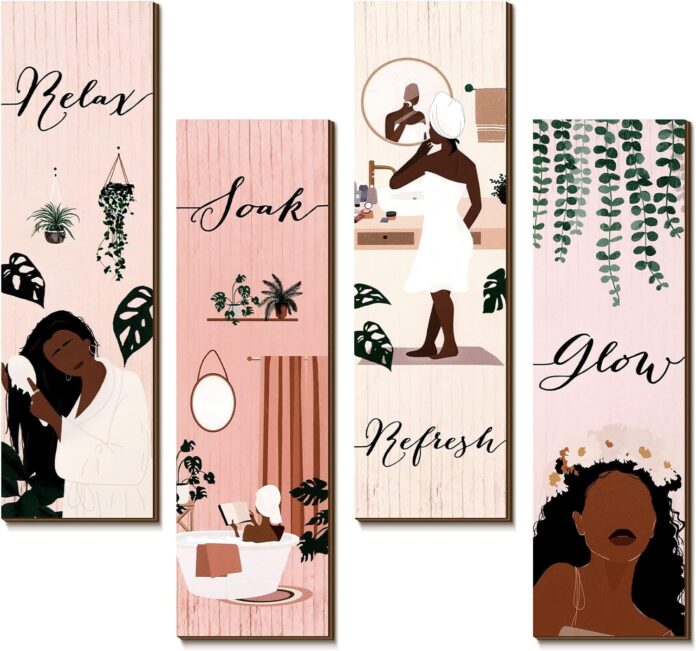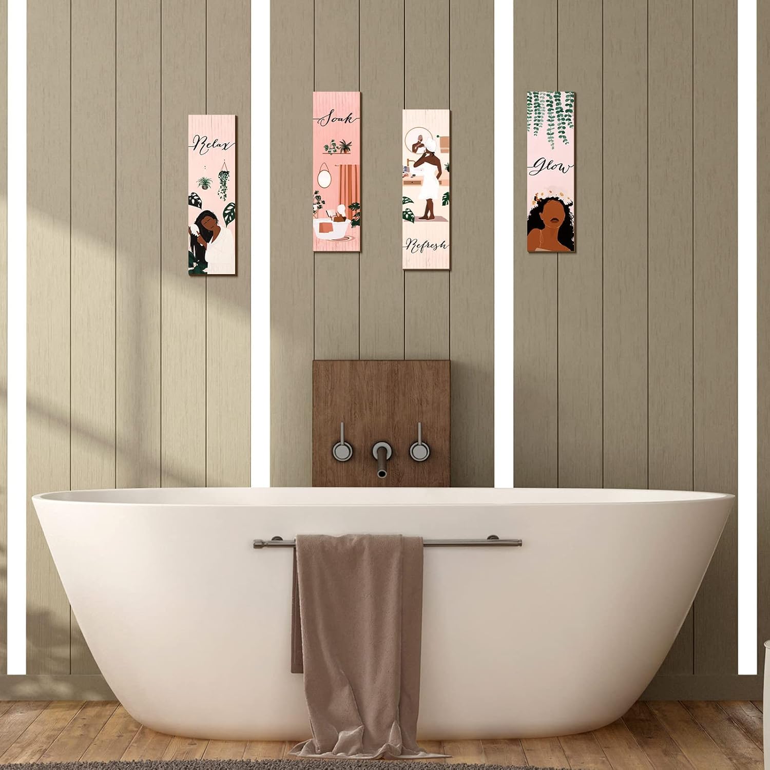 What’s Included: you will receive 4 pieces of 11.8 x 3.46 x 0.2 inch black woman bathroom wall arts, which are enough to meet your daily or festival decoration needs, or share with your friends; There are 2 hooks on the back of each boho room decor, so you can hang it on a wall or door