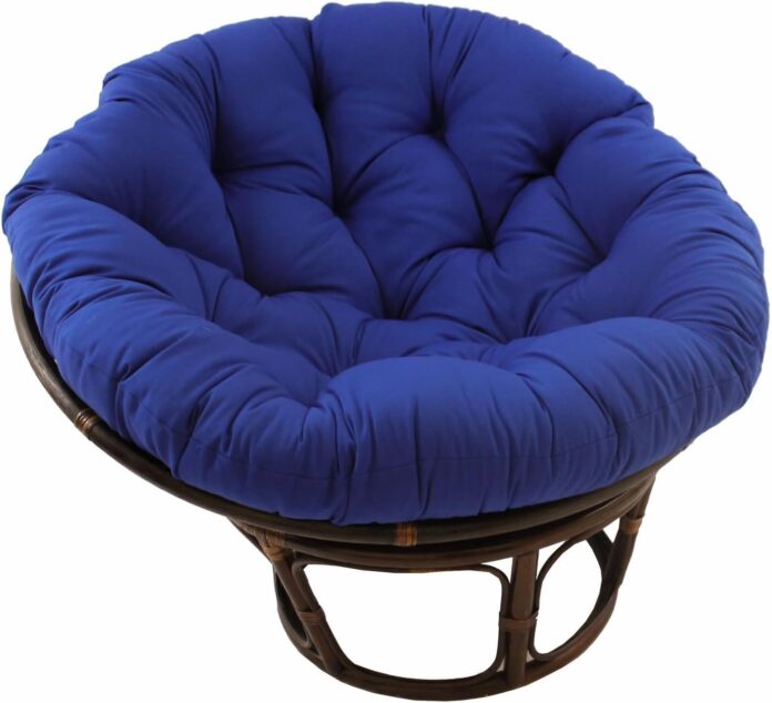Immerse your living area in sophistication with the timeless appeal of the classic rattan papasan design, transforming your home with unmatched elegance.; Assembly Required Yes; Chair Type Rattan Papasan Chair; Frame Material Rattan; Style Contemporary; Product Weight 29 lbs; Size 35x42x42 in; Item Weight 29 Pounds; Color Royal Blue; Material Twill fabric, Wood; Indoor Use Designed specifically for indoor use, making it suitable for year-round enjoyment in your home.; Special Feature Sturdy