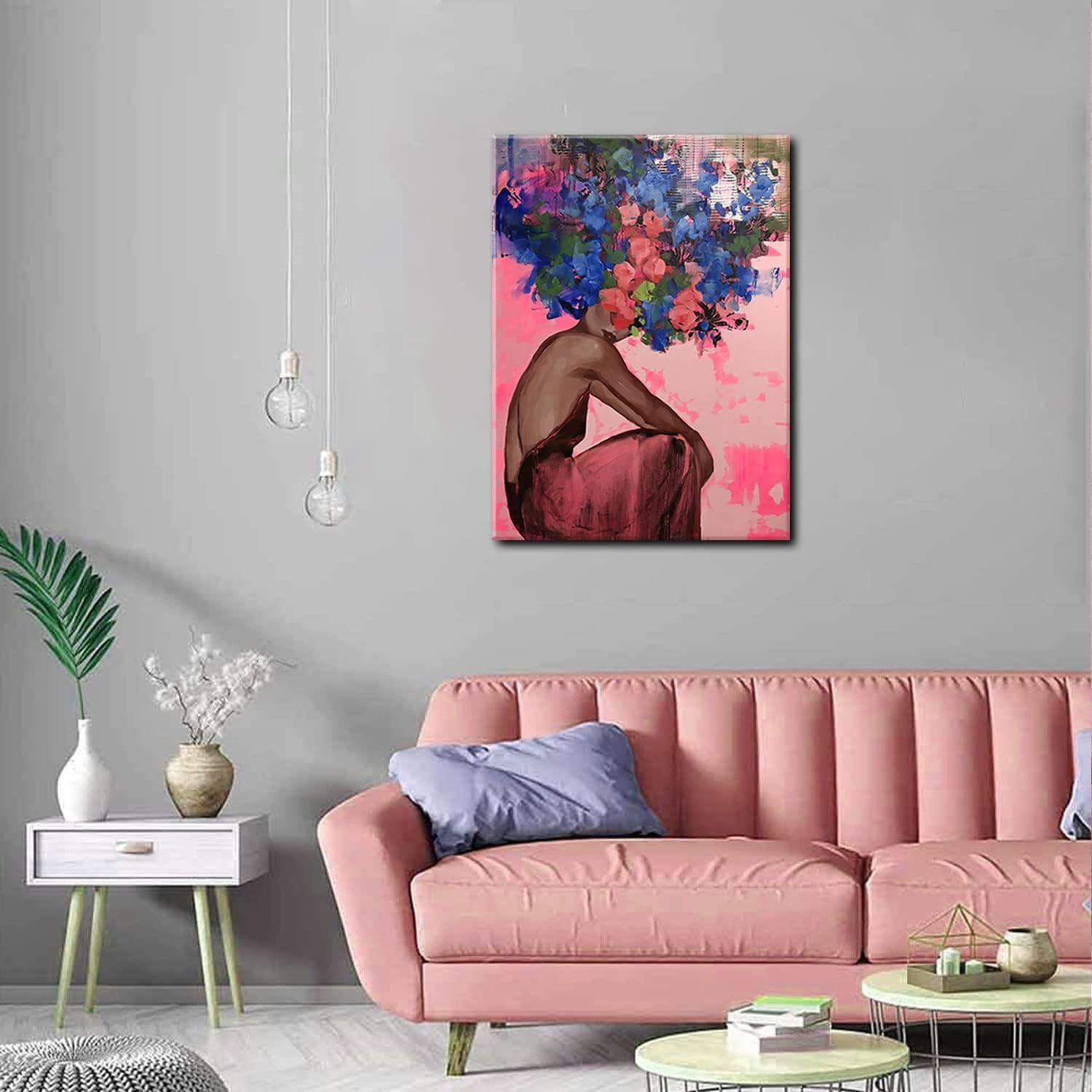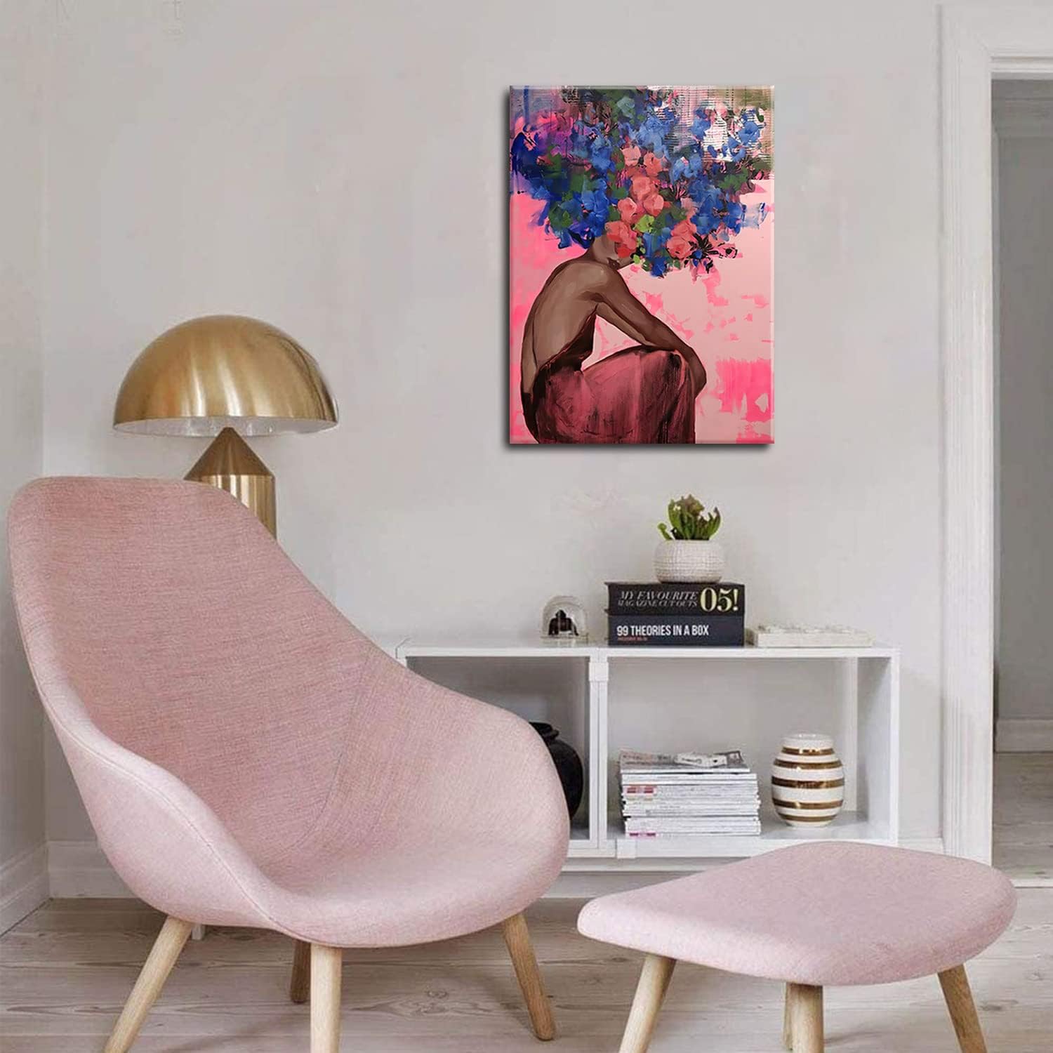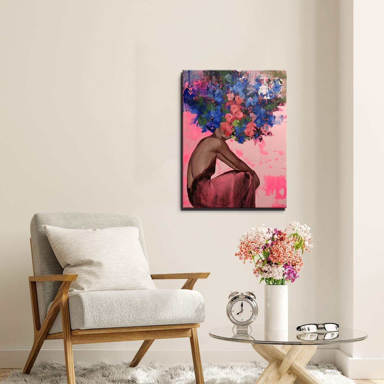 Eye-Catching Design: Framed African American Wall Art, featuring a vibrant and colorful portrait of a black woman adorned with flowers and abstract elements.