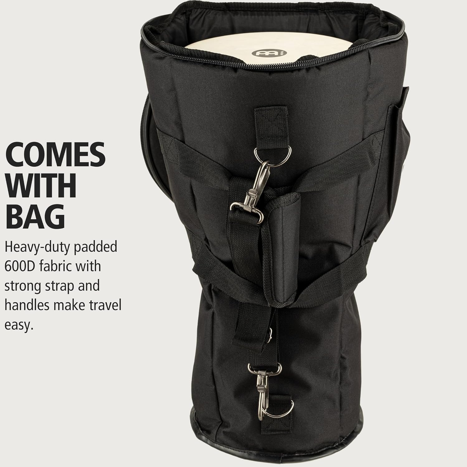 INCLUDES BAG: comes with our Professional Djembe Bag to make travel easy; it’s made with super-rugged 600D polyester that has padded walls, reinforced strap and handles, plus exterior storage for accessories