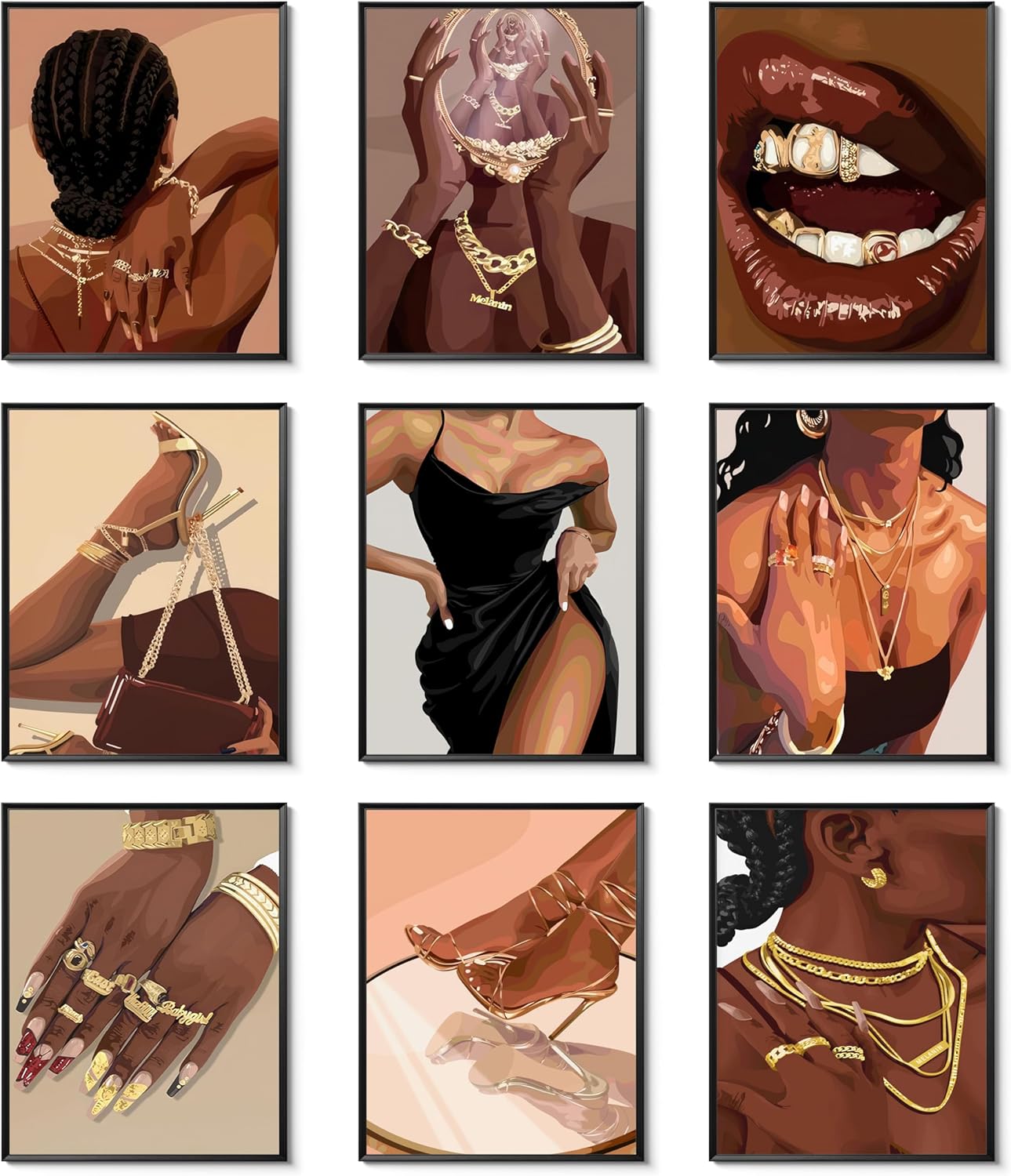African Black Girl Posters Wall Art:This Black Girl Posters Wall Art Set of 9 beautifully captures the essence of African American women, celebrating strength, beauty, and culture. Each piece showcases powerful portraits of Black women, making it perfect for anyone who values cultural representation and inspiration in their home decor.