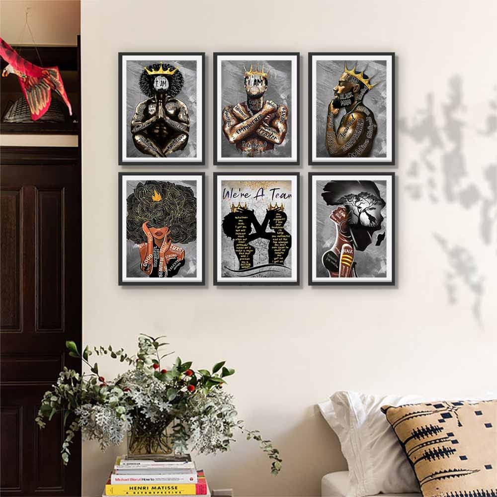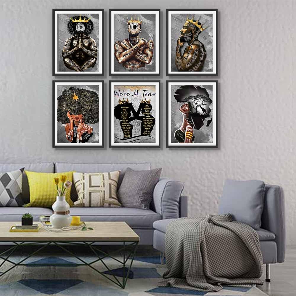 African American wall art set contains the current popular decorative theme, there are: inspirational king, queen, black girl, a set of 9 pieces can meet your decorative needs, cost-effective super. Black Girl wall art represents the strong, brave and confident character, hang it on your wall to highlight your taste