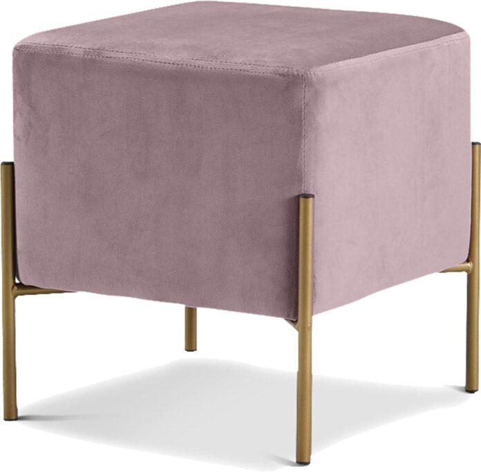 Its easy to fall fast and hard for the charms of this Isla Pink Velvet Ottoman/Stool. This stool features a classic square pouf design with the addition of stainless steel legs for a twist thats super fun and unexpected. Velvet covers each surface of the main ottoman, giving it a soft, welcoming feel that meshes nicely with the metallic finish of the pieces legs. Whether you decide to use it in the living room, den or bedroom, this stool draws attention from every angle.