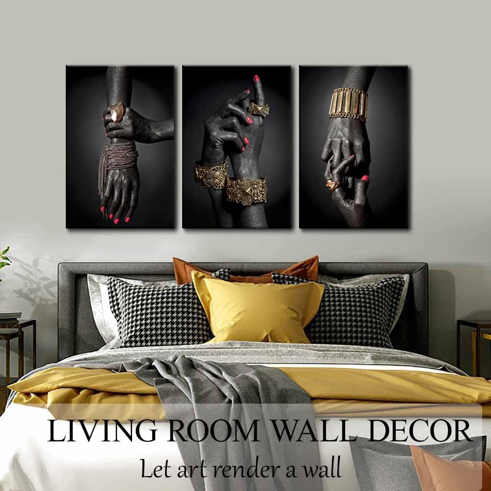 African black hand wall art the collision of black and gold, very beautiful, the multi-gold style on the hand represents the African tradition.The abstract depiction highlights the beauty and richness of African culture