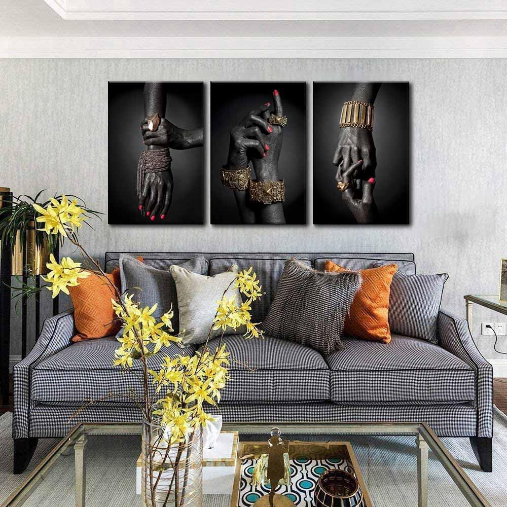 African black hand wall art the collision of black and gold, very beautiful, the multi-gold style on the hand represents the African tradition.The abstract depiction highlights the beauty and richness of African culture