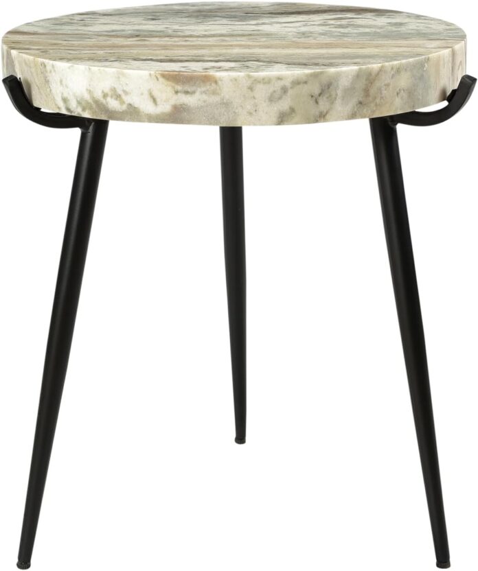 A strong iron base cradles a generous slab of marble in the HomeStock Marble Accent Table. Light brown marble creates a warm feel, while a polished finish sets a sophisticated tone. Note that some variations in color and pattern of the marble should be expected.Iron and marble are durable materials that will last for years to come.Marble is classic and emits timeless elegance wherever it is placed.The perfect piece for achieving a glam look in your home.Marble is a very porous material, which means it can stain very quickly. Avoid spills at all costs, but if they do occur, wipe them up immediately with a soft cloth and a little bit of water. Afterwards, wipe down the marble again with a dry cloth. Dont leave pools of water to dry on marble, as this can cause discoloration. Avoid cleaning products around marble, especially all-natural ones made with lemon or vinegar, as marble is particularly sensitive to acid. Always use coasters and mats on marble to protect it from scratches and spills.Made in IndiaTraditional. Color: Top – Sand Brown Marble Base – Matt Black Powder Coated. Dimension:18W 18D 20H. Product Weight:55.00 lbs. Material: MarblePowder-Coated Iron BaseWe understand how important your home is and how decorating your kitchen, dining room or bedrooms with classy, contemporary furnishings can help make it a place that reflects who you are. We believe in the power modern furniture has in creating not just a home but YOUR home. We believe in feeling good about our home’s environment, and we think you do too.