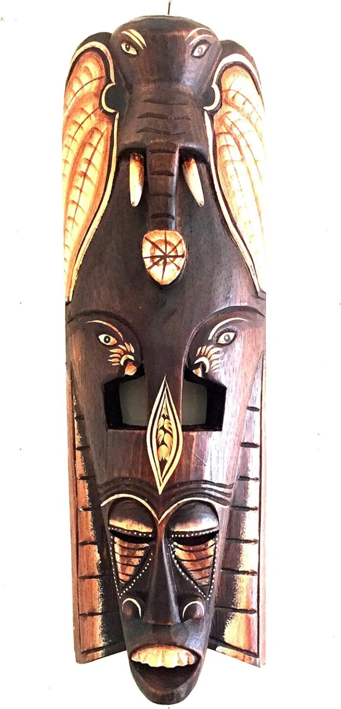 African Mask Wall Hanging Art Featuring A Stunning Elephant With Exquisite Details