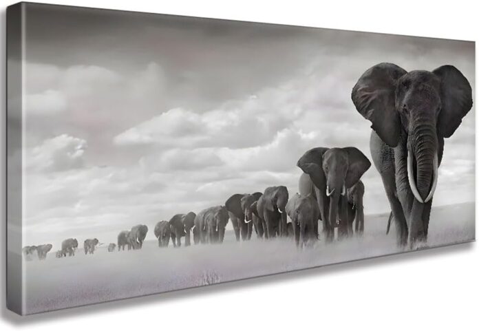 Style:The large pictures for living room to provide an harmonious atmosphere in your home and let you can appropriate the beauty of elephant in your home.