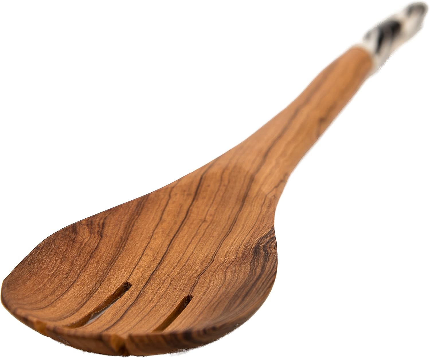 Original Olive Wood Salad Server Set in an Eco-friendly Gift Bag -Large Wooden Salad Server Spoons. Hand Carved & Beautifully Designed by Kenyan craftsmen